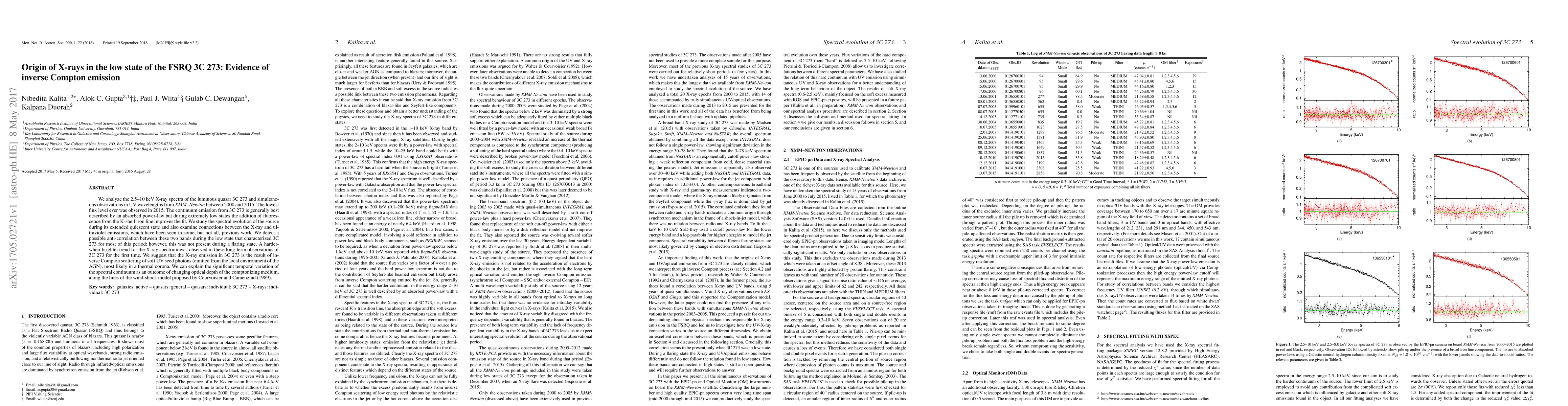Researchers analyzed X-ray spectra of quasar 3C 273 during its lowest flux state, finding evidence of inverse Compton emission from soft UV seed photons in a thermal corona.