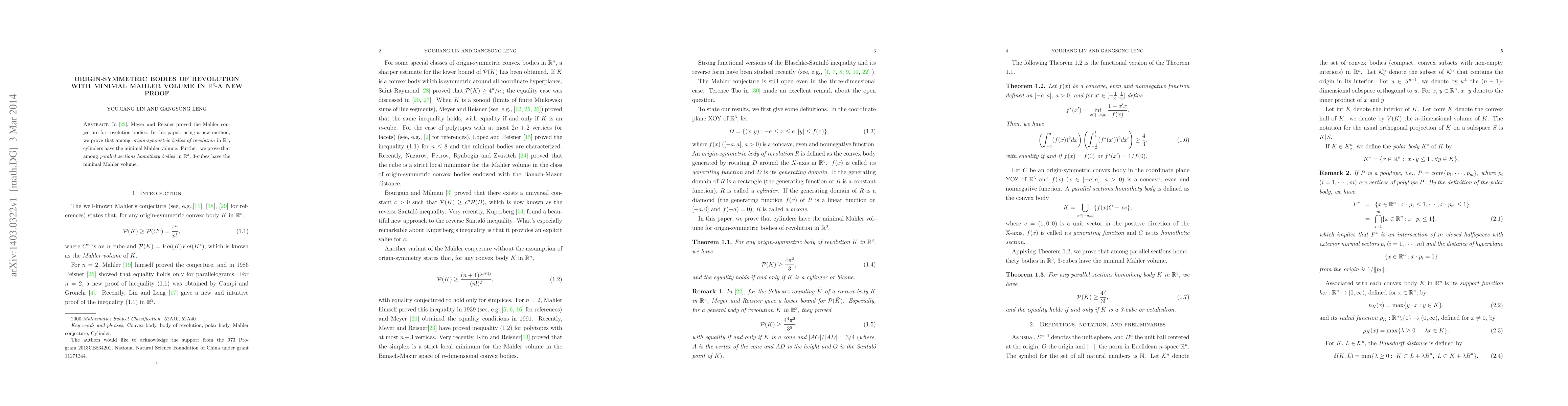 Meyer and Reisner had proved the Mahler conjecture for rovelution bodies. In this paper, using a new method, we prove that among origin-symmetric bodies of revolution in R^3, cylinders have the minimal Mahler volume. Further, we prove that among parallel sections homothety bodies in R^3, 3-cubes have the minimal Mahler volume.