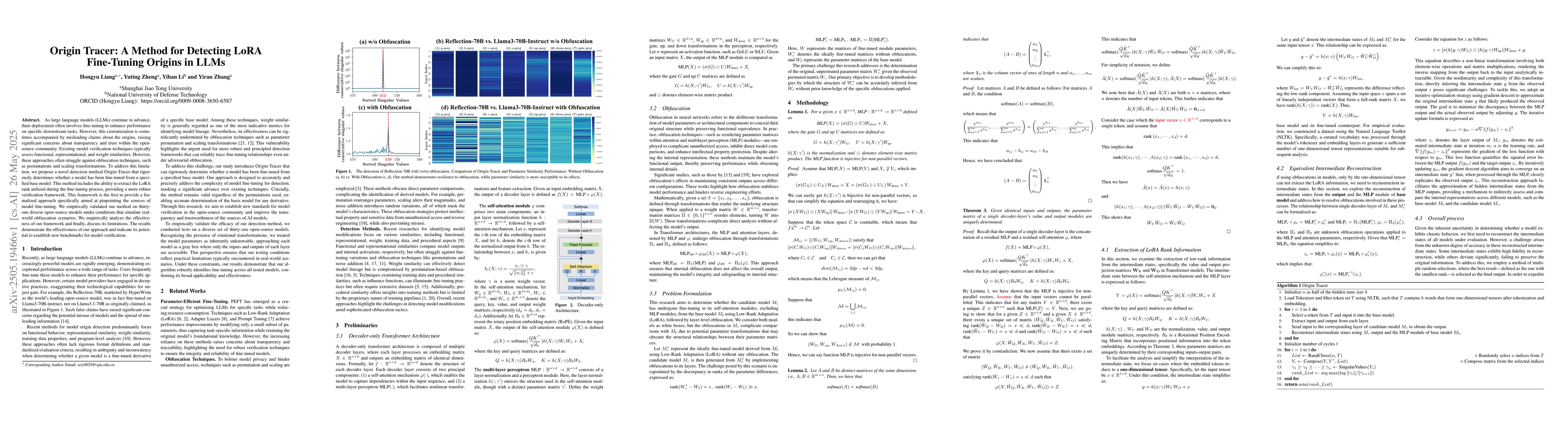 Origin-Tracer, a novel method for detecting LoRA fine-tuning origins in LLMs by analyzing the LoRA rank, offering a more robust verification framework.