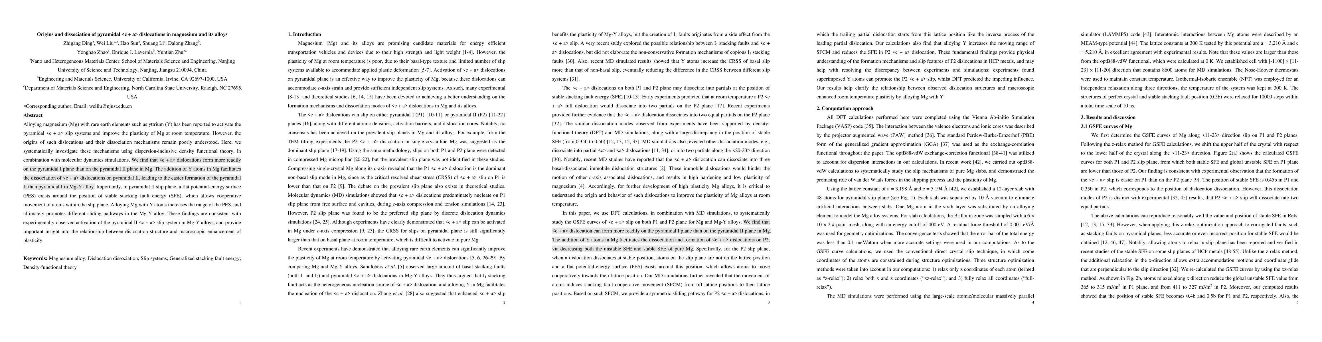 activation of the pyramidal II slip system in Mg-Y alloys, and provide