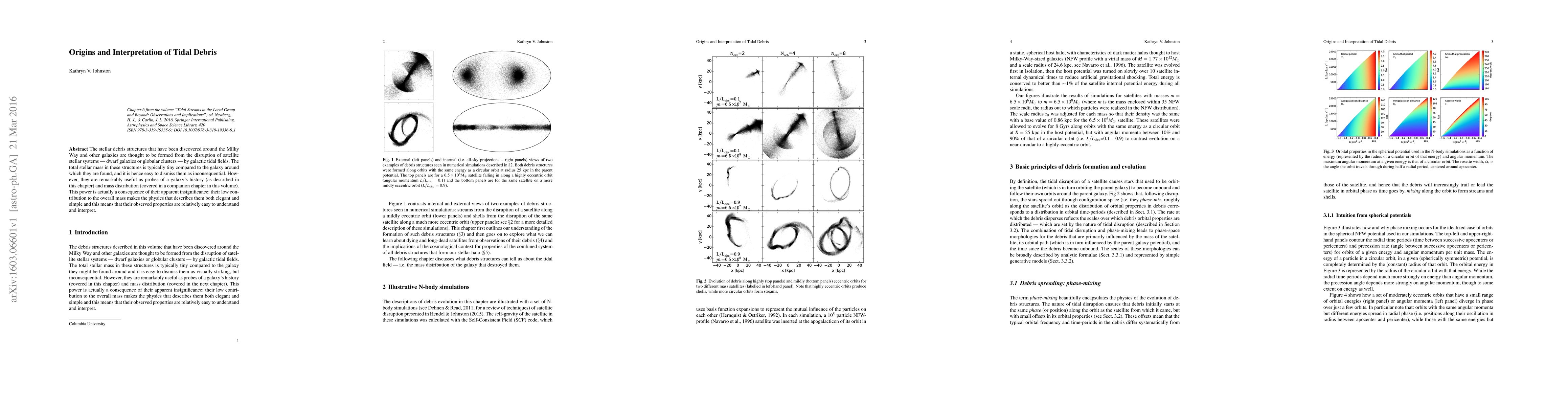 The stellar debris structures that have been discovered around the Milky Way and other galaxies are thought to be formed from the disruption of satellite stellar systems --- dwarf galaxies or globular clusters --- by galactic tidal fields. The total stellar mass in these structures is typically tiny compared to the galaxy around which they are found, and it is hence easy to dismiss them as inconsequential. However, they are remarkably useful as probes of a galaxy's history (as described in this chapter) and mass distribution (covered in a companion chapter in this volume). This power is actually a consequence of their apparent insignificance: their low contribution to the overall mass makes the physics that describes them both elegant and simple and this means that their observed properties are relatively easy to understand and interpret.