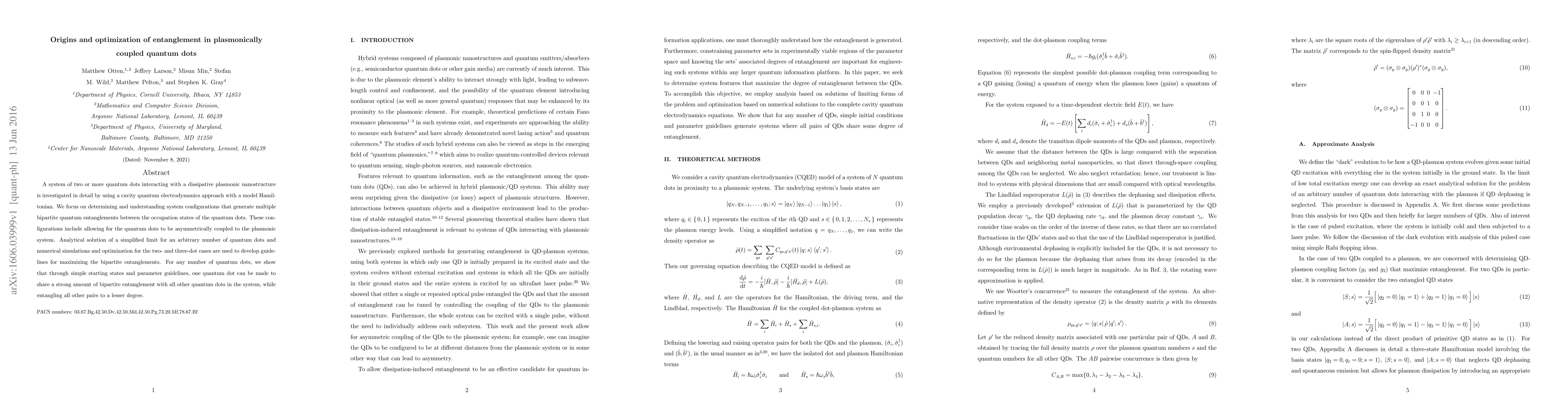 This paper explores the generation and optimization of entanglement in quantum dots coupled to plasmonic nanostructures using cavity quantum electrodynamics. It provides analytical and numerical methods to maximize bipartite entanglements, showing that one quantum dot can strongly entangle with all others under specific configurations.