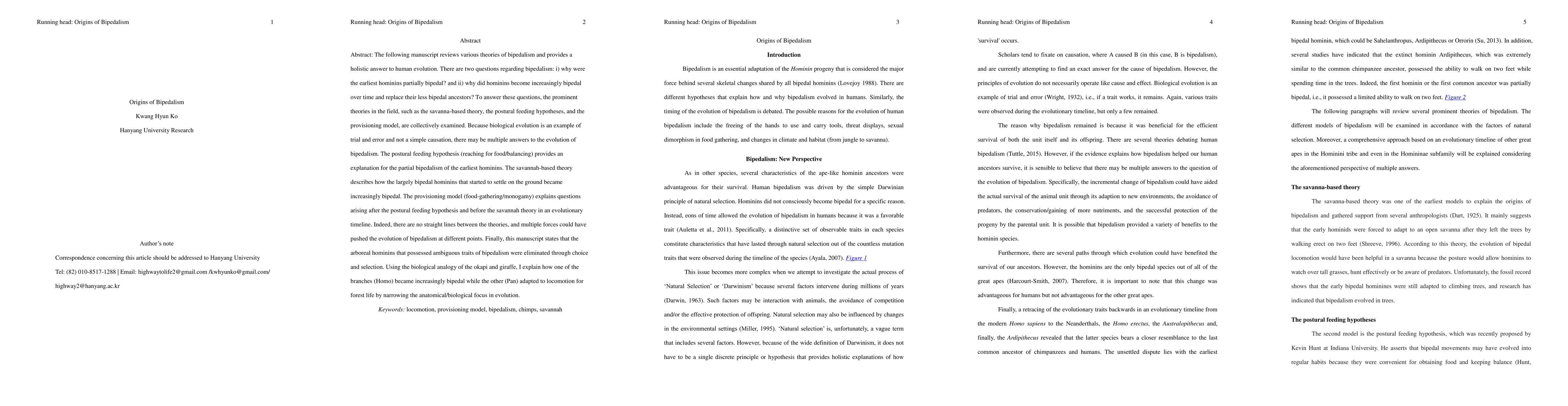 The following manuscript reviews various theories of bipedalism and provides a holistic answer to human evolution. There are two questions regarding bipedalism: i) why were the earliest hominins partially bipedal? and ii) why did hominins become increasingly bipedal over time and replace their less bipedal ancestors? To answer these questions, the prominent theories in the field, such as the savanna-based theory, the postural feeding hypotheses, and the provisioning model, are collectively examined. Because biological evolution is an example of trial and error and not a simple causation, there may be multiple answers to the evolution of bipedalism. The postural feeding hypothesis (reaching for food/balancing) provides an explanation for the partial bipedalism of the earliest hominins. The savannah-based theory describes how the largely bipedal hominins that started to settle on the ground became increasingly bipedal. The provisioning model (food-gathering/monogamy) explains questions arising after the postural feeding hypothesis and before the savannah theory in an evolutionary timeline. Indeed, there are no straight lines between the theories, and multiple forces could have pushed the evolution of bipedalism at different points. Finally, this manuscript states that the arboreal hominins that possessed ambiguous traits of bipedalism were eliminated through choice and selection. Using the biological analogy of the okapi and giraffe, I explain how one of the branches (Homo) became increasingly bipedal while the other (Pan) adapted to locomotion for forest life by narrowing the anatomical/biological focus in evolution.