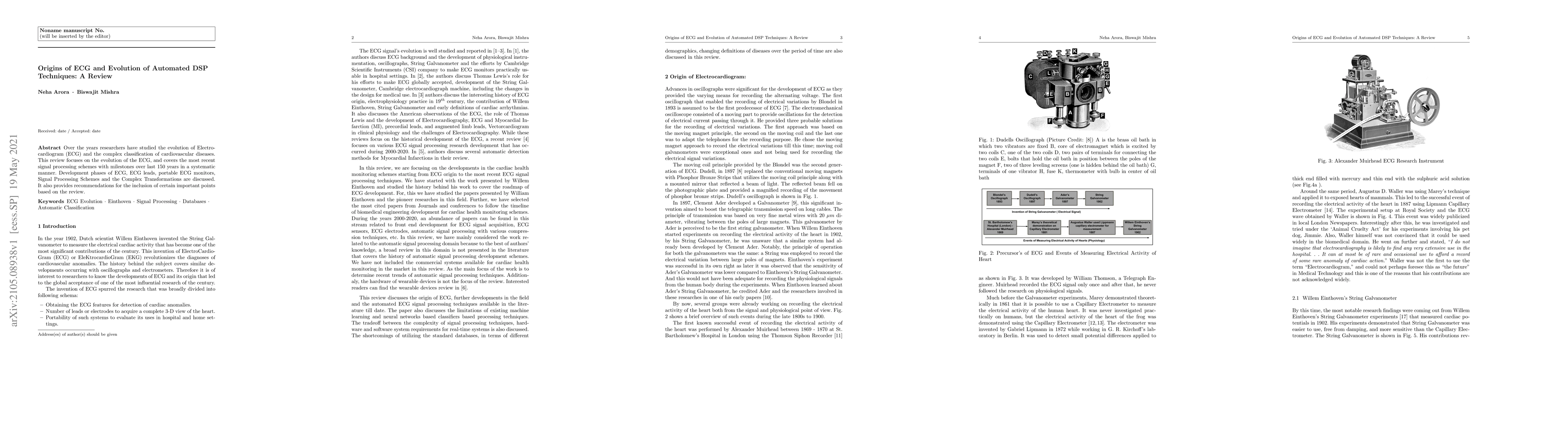This review traces the historical development of the Electrocardiogram (ECG) over the past 150 years, highlighting advancements in signal processing techniques and the evolution of portable ECG monitors, while also recommending key points for future research.