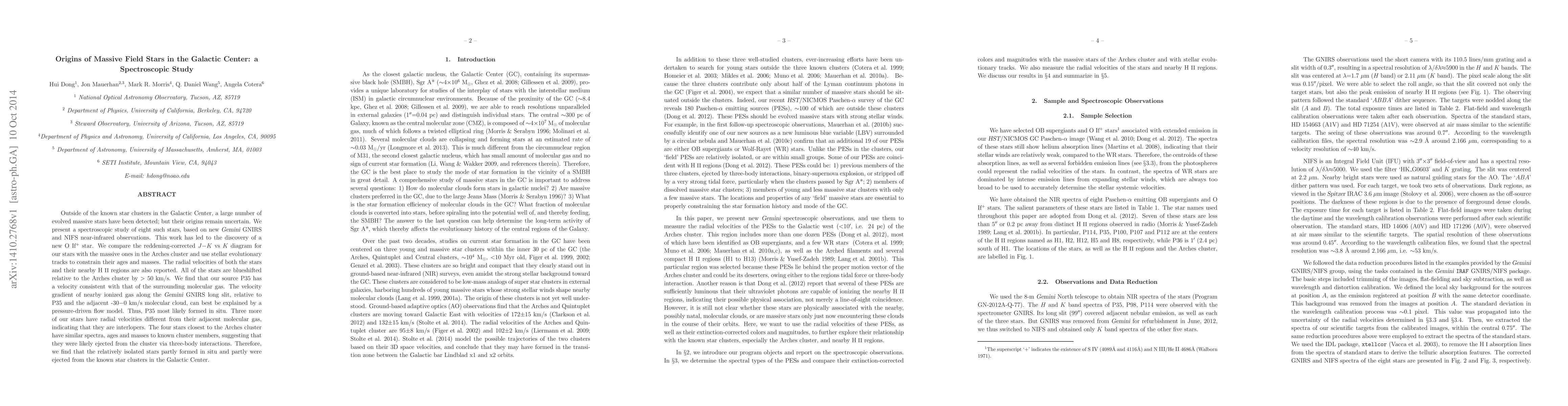 The paper presents detailed spectroscopic observations and analysis of massive field stars in the Galactic Center, providing new insights into their origins and formation mechanisms.