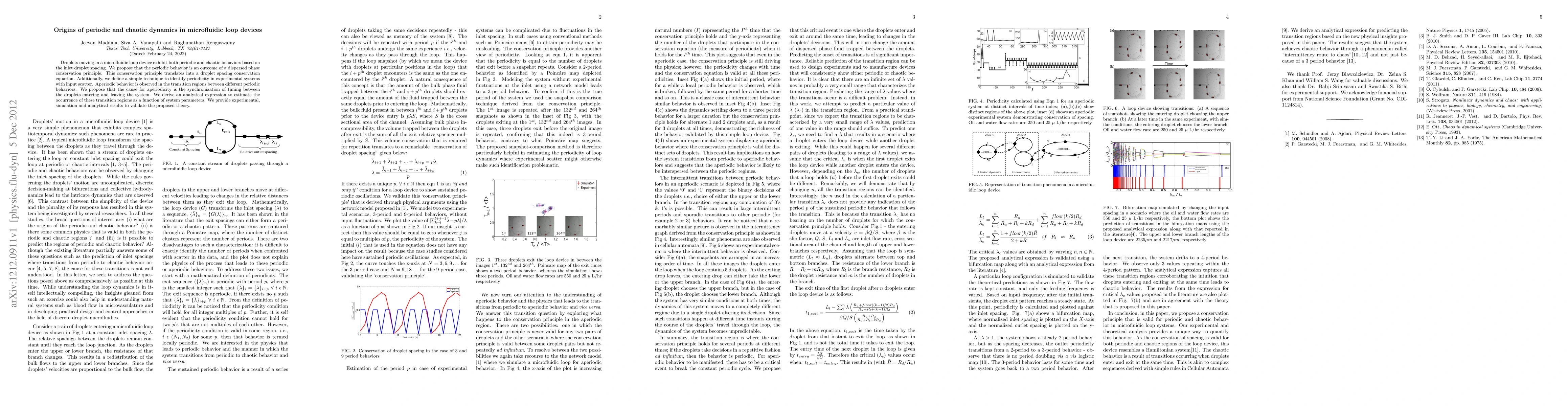 Researchers investigate how droplets behave in microfluidic loop devices, discovering that periodic behavior is linked to a conservation principle, while chaotic behavior emerges from synchronization of timing between entering and leaving droplets.