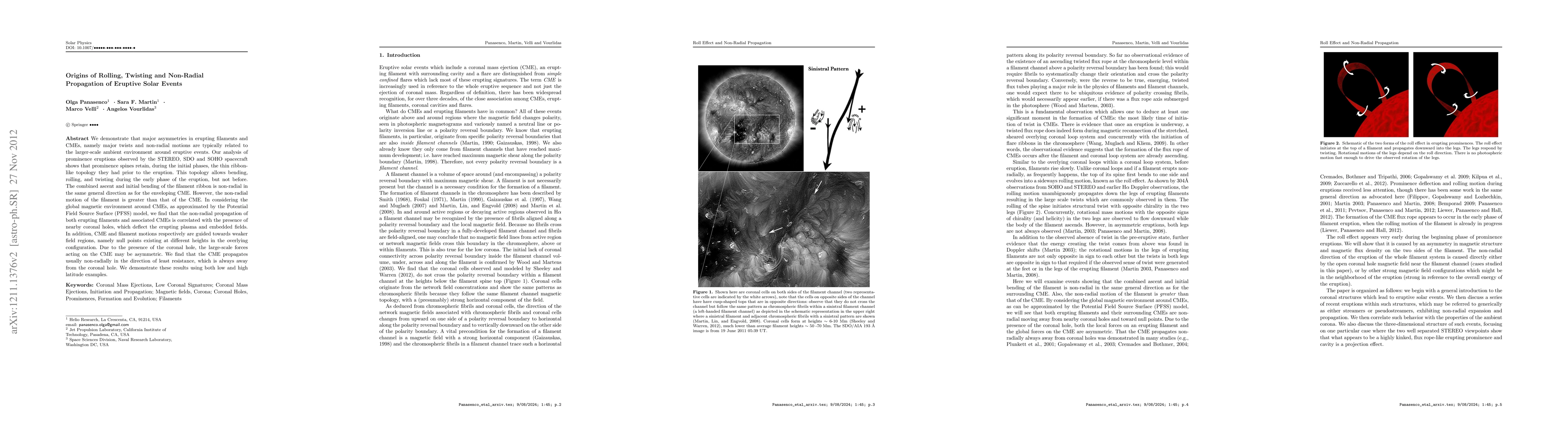 This paper investigates the origins of asymmetries in solar eruptive events, showing that twists and non-radial motions in filaments and coronal mass ejections (CMEs) are influenced by the ambient magnetic environment. The study finds that the initial thin ribbon-like topology of prominence spines allows for bending and twisting during eruptions, which are guided by the presence of nearby coronal holes and weaker magnetic field regions.