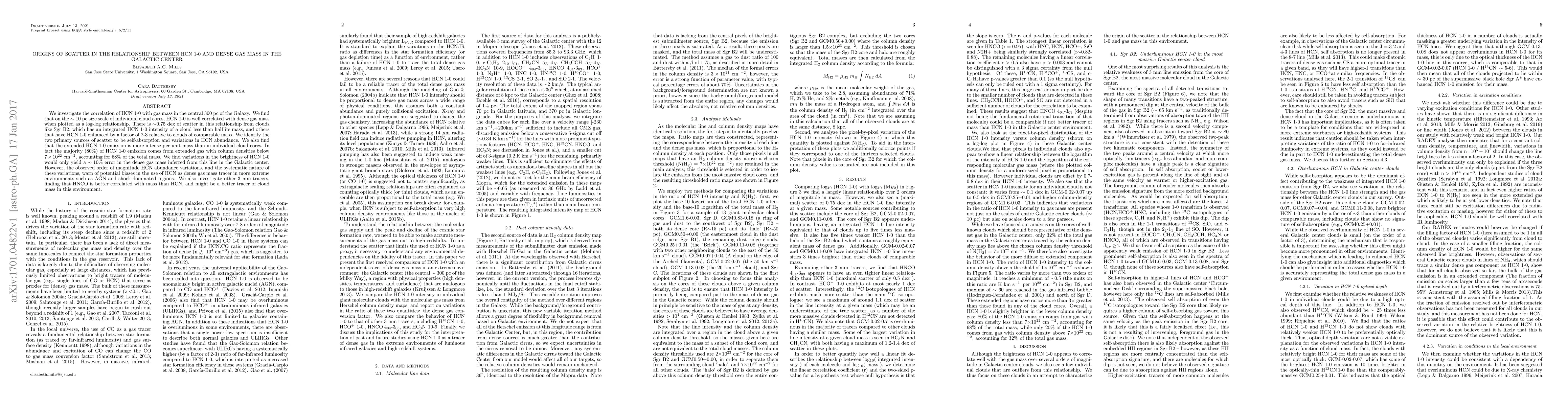 Research in the Galactic center reveals that HCN 1-0 is generally correlated with dense gas mass but shows significant scatter due to self-absorption and variations in HCN abundance, which can lead to biases in using HCN as a tracer.