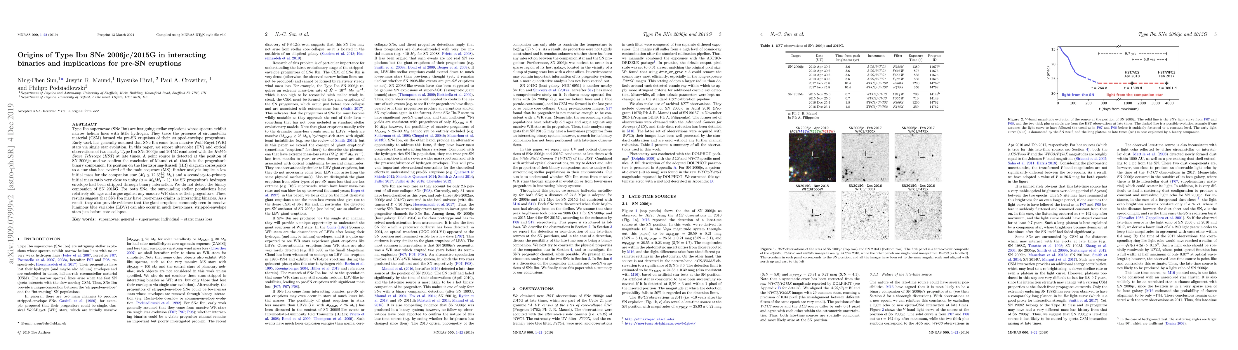 Type Ibn supernovae (SNe Ibn) are intriguing stellar explosions whose spectra exhibit narrow helium lines with little hydrogen. They trace the presence of circumstellar material (CSM) formed via pre-SN eruptions of their stripped-envelope progenitors. Early work has generally assumed that SNe Ibn come from massive Wolf-Rayet (WR) stars via single star evolution. In this paper, we report ultraviolet (UV) and optical observations of two nearby Type Ibn SNe 2006jc and 2015G conducted with the Hubble Space Telescope (HST) at late times. A point source is detected at the position of SN 2006jc, and we confirm the conclusion of Maund et al. that it is the progenitor's binary companion. Its position on the Hertzsprung-Russell (HR) diagram corresponds to a star that has evolved off the main sequence (MS); further analysis implies a low initial mass for the companion star ($M_2$ $\le$ 11.9$^{+1.2}_{-0.8}$ $M_\odot$) and a secondary-to-primary initial mass ratio very close to unity ($q$ = $M_2/M_1$ $\sim$ 1); the SN progenitor's hydrogen envelope had been stripped through binary interaction. We do not detect the binary companion of SN 2015G. For both SNe, the surrounding stellar populations have relatively old ages and argue against any massive WR stars as their progenitors. These results suggest that SNe Ibn may have lower-mass origins in interacting binaries. As a result, they also provide evidence that the giant eruptions commonly seen in massive luminous blue variables (LBVs) can also occur in much lower-mass, stripped-envelope stars just before core collapse.