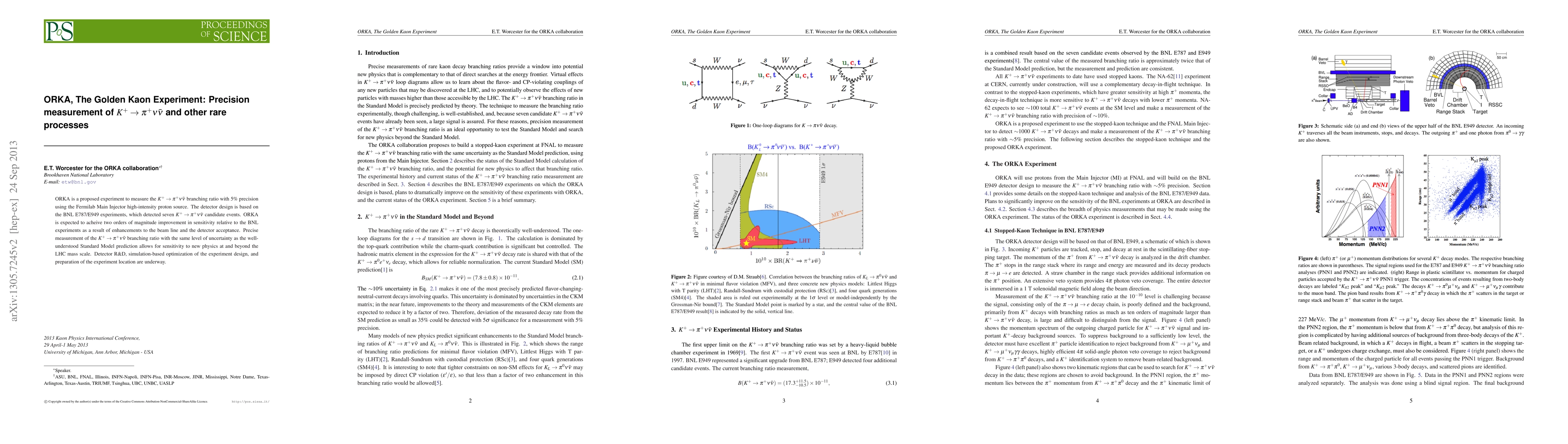 ORKA aims to measure the K+ -> pi+nunubar branching ratio with 5% precision using a high-intensity proton source at Fermilab, promising a two-order improvement in sensitivity over previous BNL experiments. This precision could reveal new physics beyond the Standard Model.