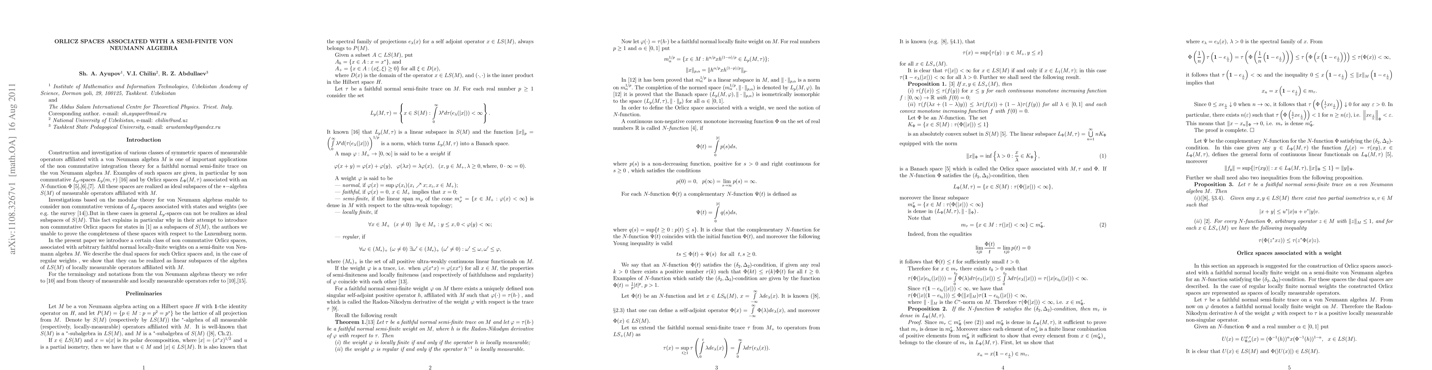 In the present paper we introduce a certain class of non commutative Orlicz spaces, associated with arbitrary faithful normal locally-finite weights on a semi-finite von Neumann algebra $M.$ We describe the dual spaces for such Orlicz spaces and, in the case of regular weights, we show that they can be realized as linear subspaces of the algebra of $LS(M)$ of locally measurable operators affiliated with $M.$
