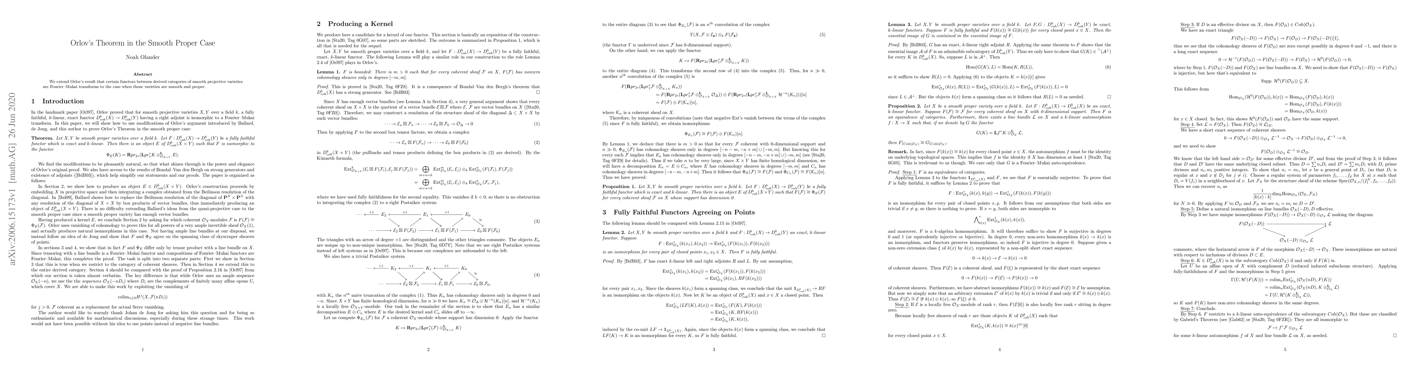 Orlov's Theorem is extended to smooth proper varieties, confirming that specific functors between their derived categories are indeed Fourier-Mukai transforms, thus broadening the applicability of Orlov's original result.
