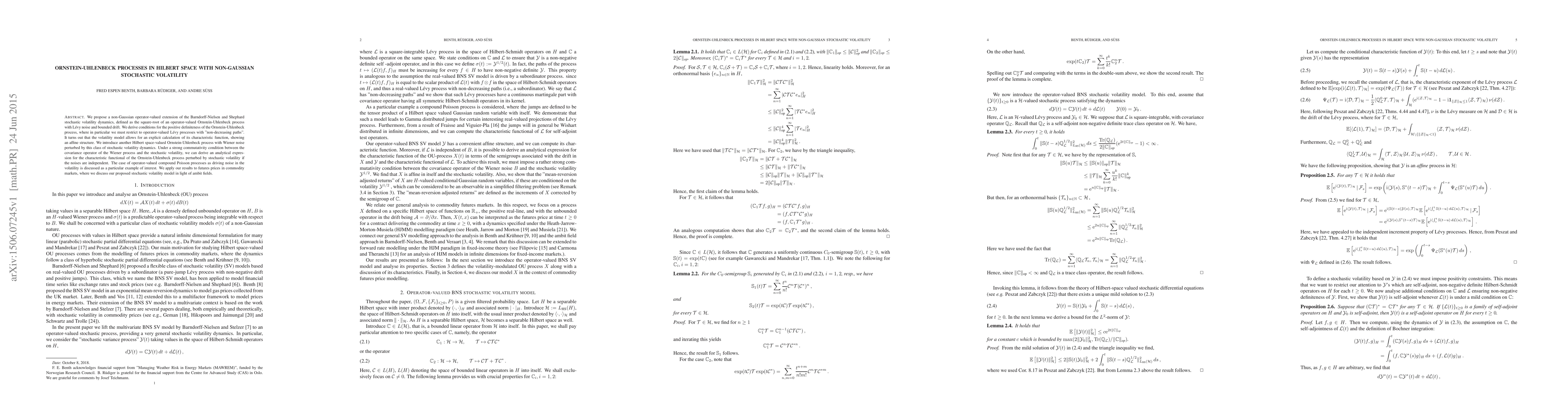 We propose a non-Gaussian operator-valued extension of the Barndorff-Nielsen and Shephard stochastic volatility dynamics, defined as the square-root of an operator-valued Ornstein-Uhlenbeck process with Levy noise and bounded drift. We derive conditions for the positive definiteness of the Ornstein-Uhlenbeck process, where in particular we must restrict to operator-valued Levy processes with "non-decreasing paths". It turns out that the volatility model allows for an explicit calculation of its characteristic function, showing an affine structure. We introduce another Hilbert space-valued Ornstein-Uhlenbeck process with Wiener noise perturbed by this class of stochastic volatility dynamics. Under a strong commutativity condition between the covariance operator of the Wiener process and the stochastic volatility, we can derive an analytical expression for the characteristic functional of the Ornstein-Uhlenbeck process perturbed by stochastic volatility if the noises are independent. The case of operator-valued compound Poisson processes as driving noise in the volatility is discussed as a particular example of interest. We apply our results to futures prices in commodity markets, where we discuss our proposed stochastic volatility model in light of ambit fields.