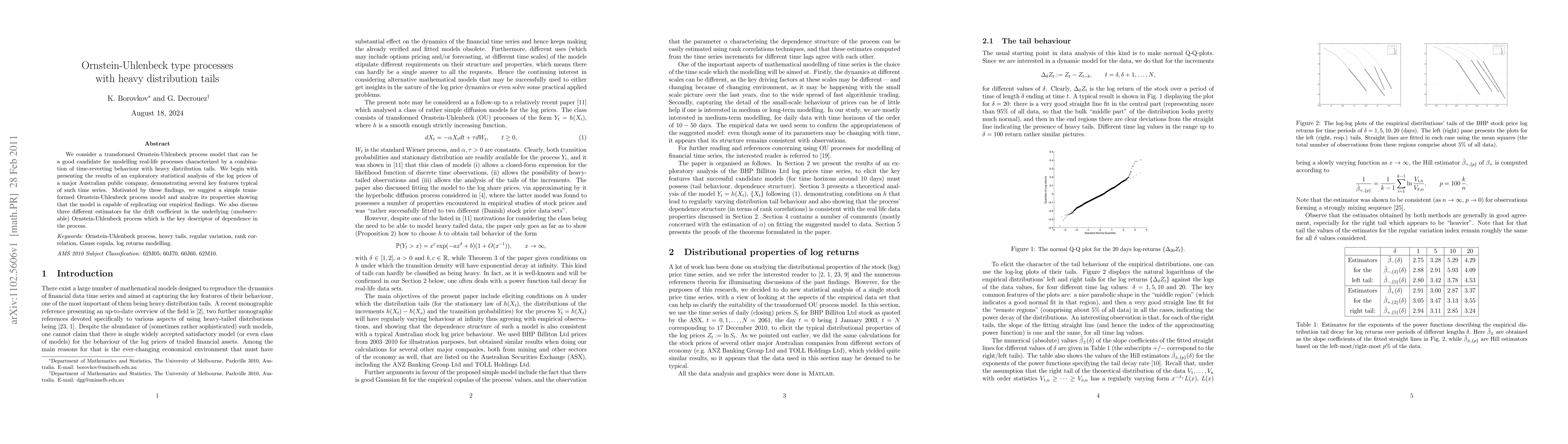 We consider a transformed Ornstein-Uhlenbeck process model that can be a good candidate for modelling real-life processes characterized by a combination of time-reverting behaviour with heavy distribution tails. We begin with presenting the results of an exploratory statistical analysis of the log prices of a major Australian public company, demonstrating several key features typical of such time series. Motivated by these findings, we suggest a simple transformed Ornstein-Uhlenbeck process model and analyze its properties showing that the model is capable of replicating our empirical findings. We also discuss three different estimators for the drift coefficient in the underlying (unobservable) Ornstein-Uhlenbeck process which is the key descriptor of dependence in the process.