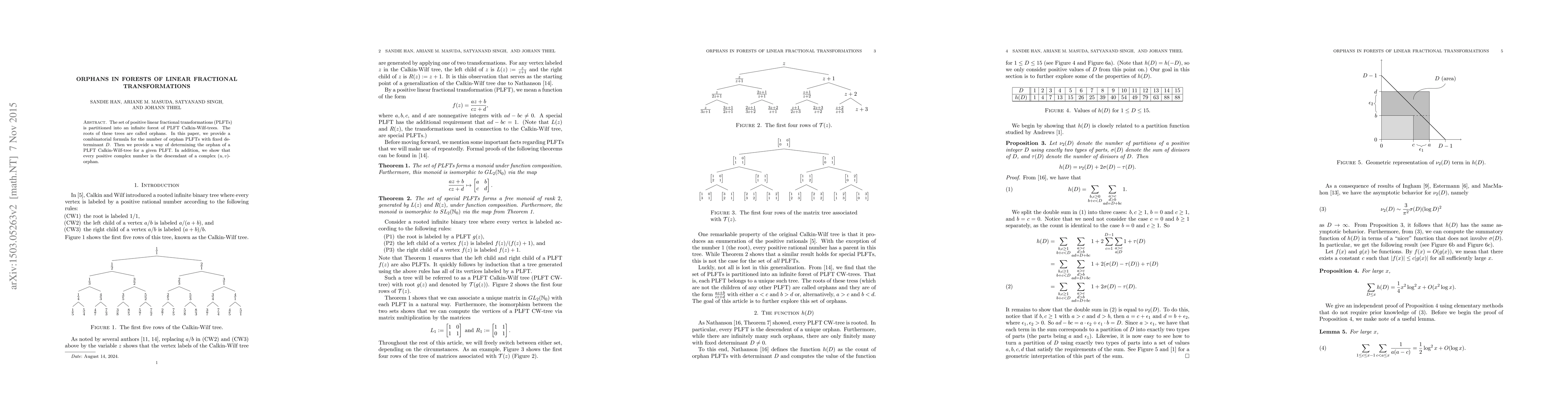 This paper studies the set of orphans in certain Calkin-Wilf trees generated by linear fractional transformations.