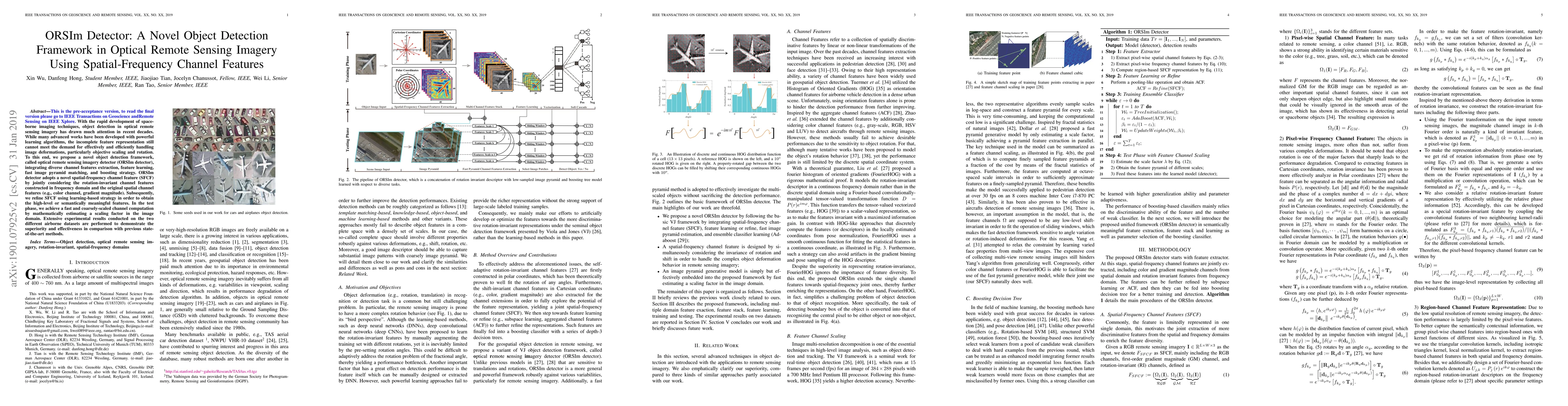 The ORSIm detector framework introduces a novel object detection method for optical remote sensing imagery, utilizing spatial-frequency channel features to enhance feature representation and improve detection efficiency under image deformations. Experimental results show superior performance compared to existing state-of-the-art methods.