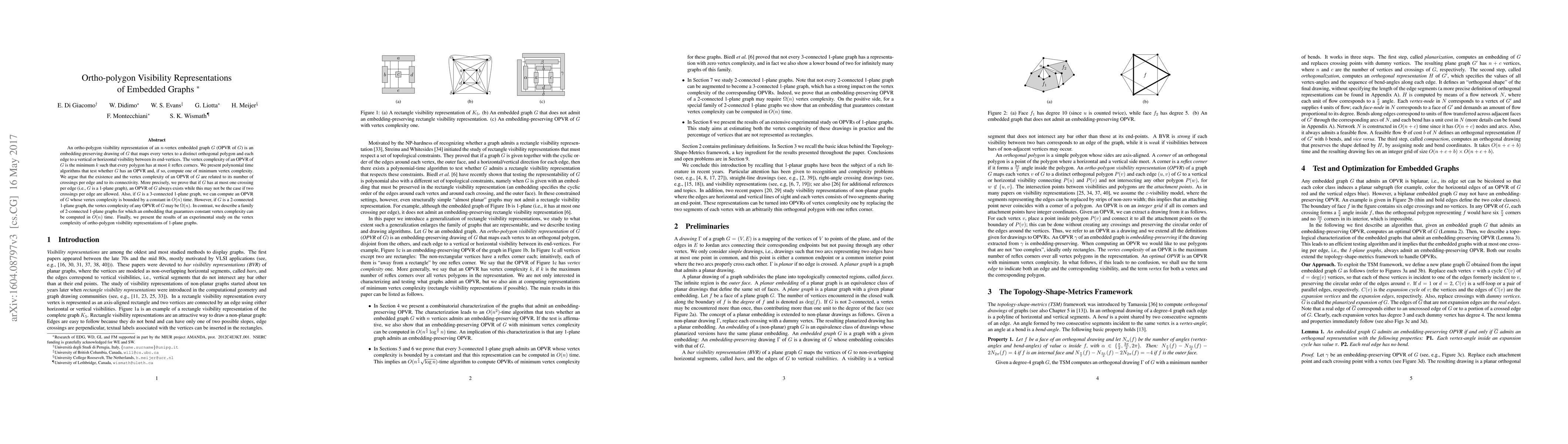 This paper presents polynomial time algorithms to determine and construct ortho-polygon visibility representations (OPVR) of embedded graphs, focusing on minimizing vertex complexity. It shows that 1-plane graphs (with at most one crossing per edge) always have an OPVR, while 2-connected 1-plane graphs may have high vertex complexity, contrasting with 3-connected 1-plane graphs that allow constant complexity OPVRs.