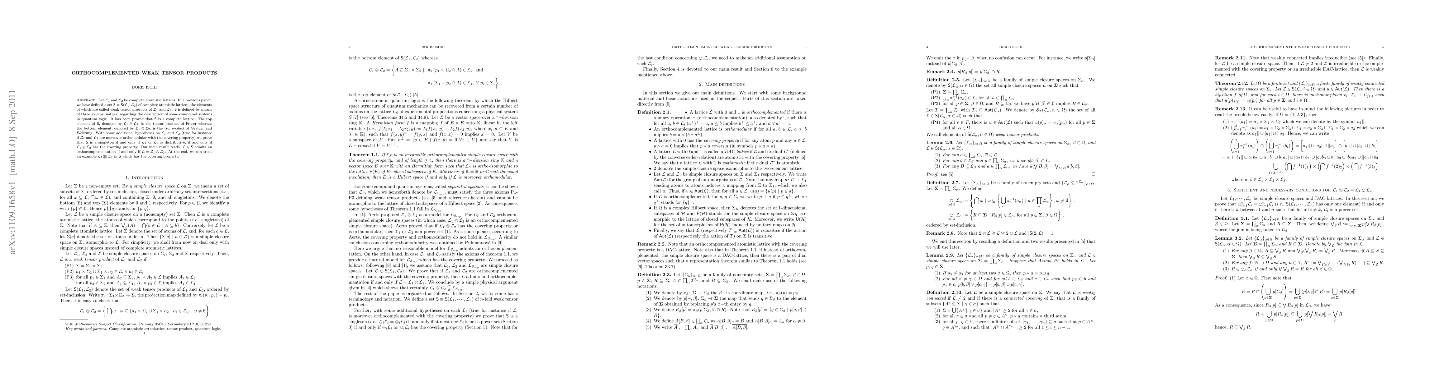 This paper investigates the properties of orthocomplemented weak tensor products of complete atomistic lattices L1 and L2, finding that they have an orthocomplementation if and only if L is the box product of L1 and L2.