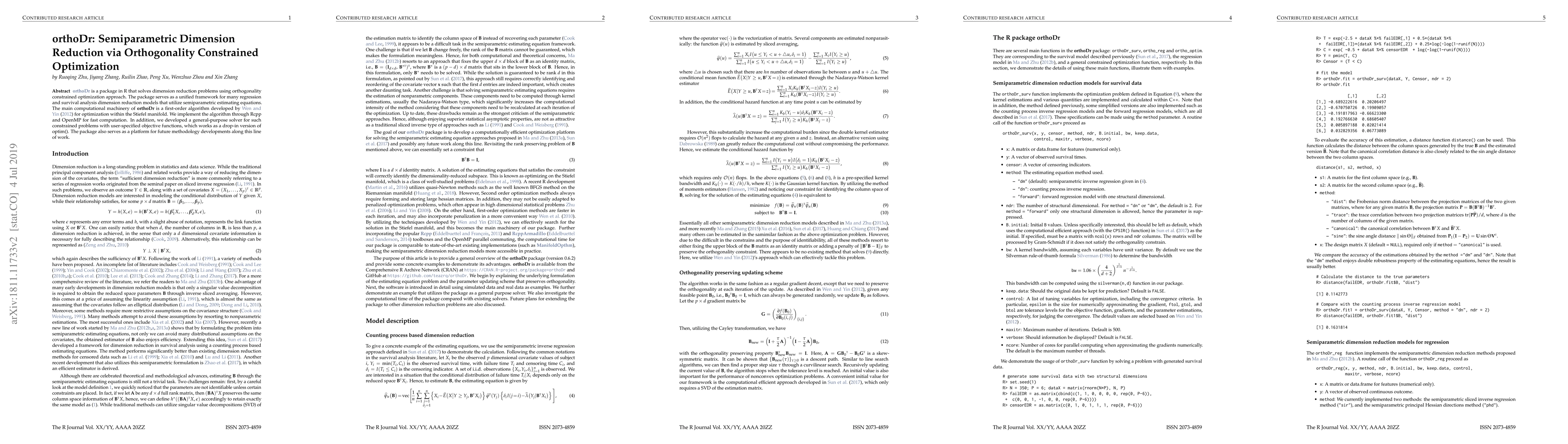 This R package, orthoDr, uses semiparametric dimension reduction models to reduce complex data into lower dimensions while maintaining orthogonal constraints for optimization, enabling efficient computation of regression and survival analysis models.