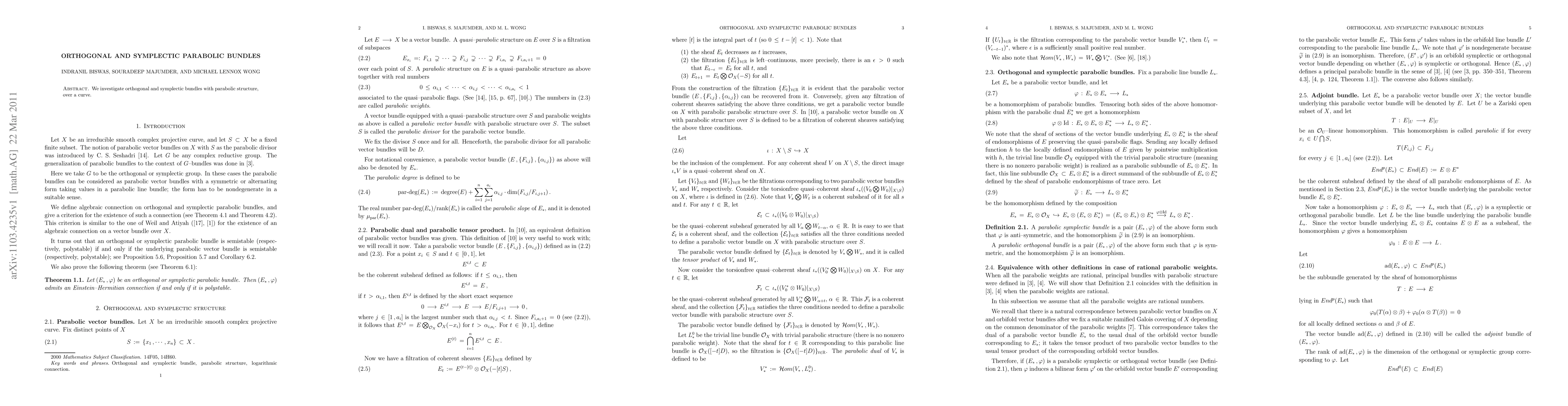 Summary: This paper explores the properties and structures of orthogonal and symplectic parabolic bundles over a curve, focusing on their geometric and algebraic characteristics. The study aims to understand how these bundles behave under parabolic deformations.