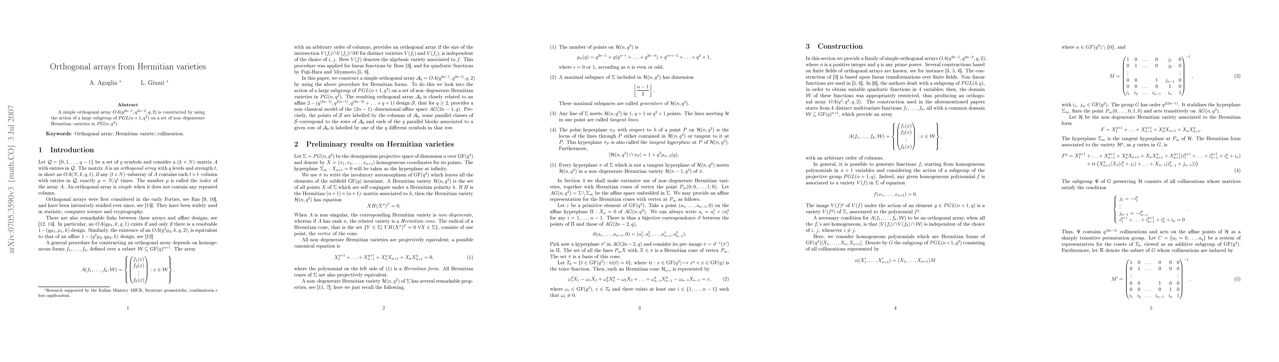 This paper constructs an orthogonal array from the action of a subset of PGL(n+1,q^2) on Hermitian varieties in PG(n,q^2), showing that its rows correspond to blocks of an affine design, specifically a non-classical model of AG(2n-1,q) for q > 2.