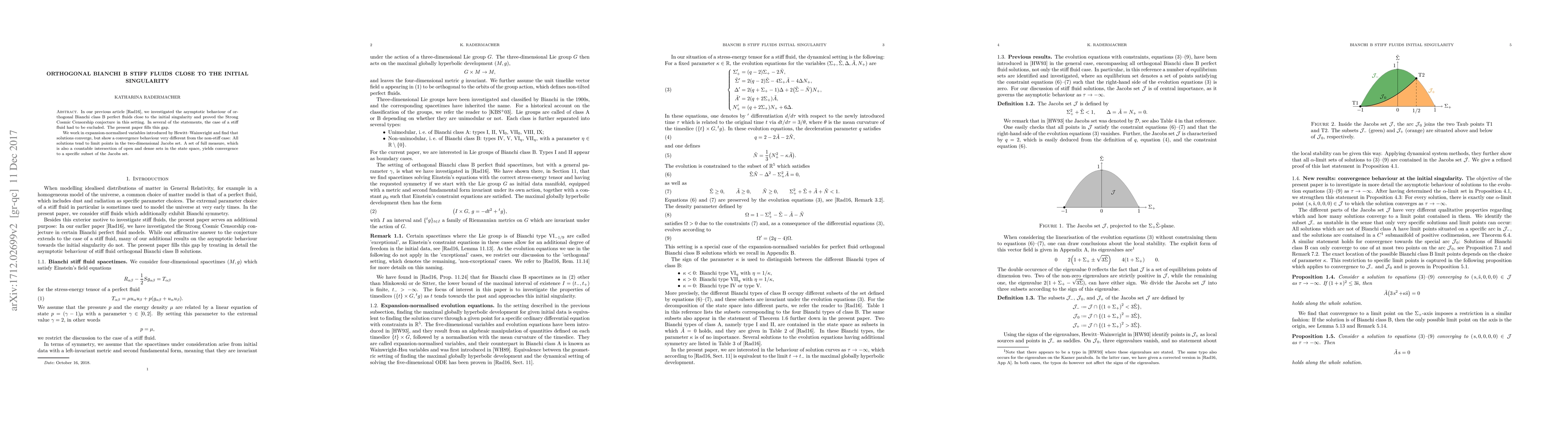 In our previous article [Rad16], we investigated the asymptotic behaviour of orthogonal Bianchi class B perfect fluids close to the initial singularity and proved the Strong Cosmic Censorship conjecture in this setting. In several of the statements, the case of a stiff fluid had to be excluded. The present paper fills this gap. We work in expansion-normalised variables introduced by Hewitt-Wainwright and find that solutions converge, but show a convergence behaviour very different from the non-stiff case: All solutions tend to limit points in the two-dimensional Jacobs set. A set of full measure, which is also a countable intersection of open and dense sets in the state space, yields convergence to a specific subset of the Jacobs set.