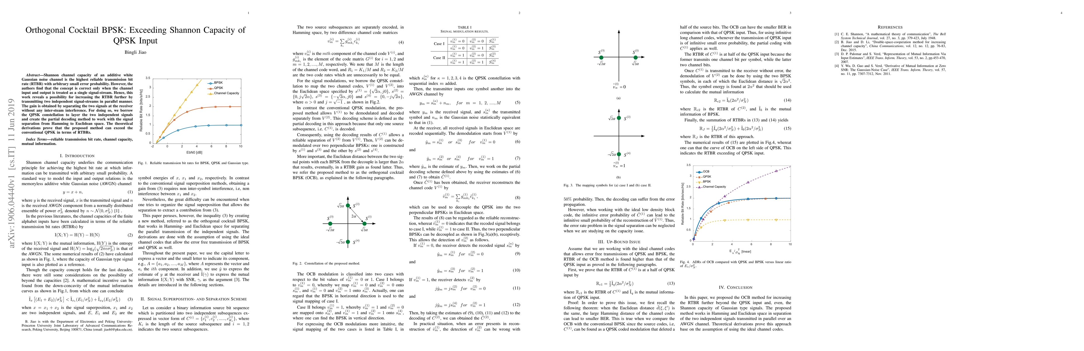 Shannon channel capacity of an additive white Gaussian noise channel is the highest reliable transmission bit rate (RTBR) with arbitrary small error probability. However, the authors find that the concept is correct only when the channel input and output is treated as a single signal-stream. Hence, this work reveals a possibility for increasing the RTBR further by transmitting two independent signal-streams in parallel manner. The gain is obtained by separating the two signals at the receiver without any inter-steam interference. For doing so, we borrow the QPSK constellation to layer the two independent signals and create the partial decoding method to work with the signal separation from Hamming to Euclidean space. The theoretical derivations prove that the proposed method can exceed the conventional QPSK in terms of RTBRs.