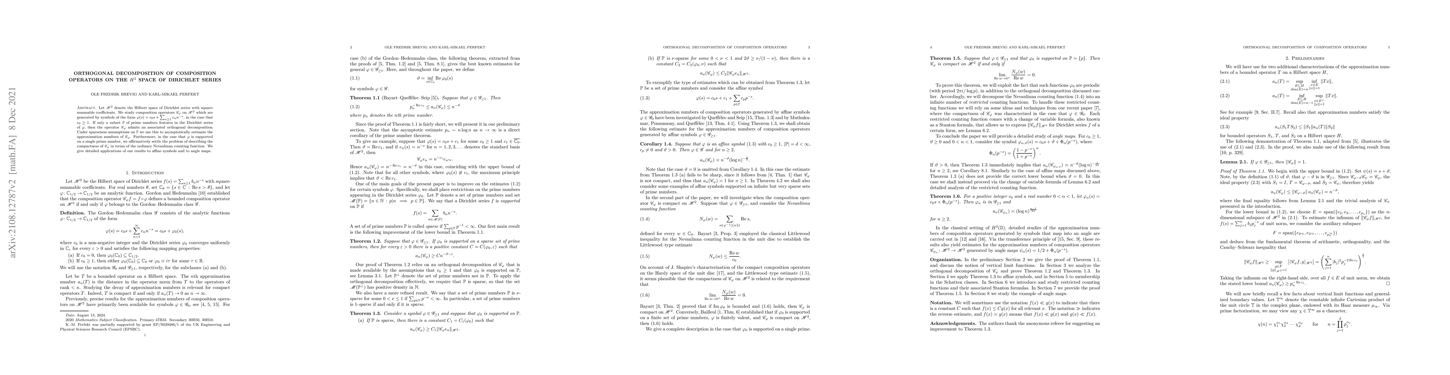 This paper investigates composition operators on the $H^2$ space of Dirichlet series, focusing on operators generated by symbols involving prime numbers. It establishes an orthogonal decomposition for such operators under sparseness conditions and uses this to estimate approximation numbers and describe compactness in terms of the Nevanlinna counting function.