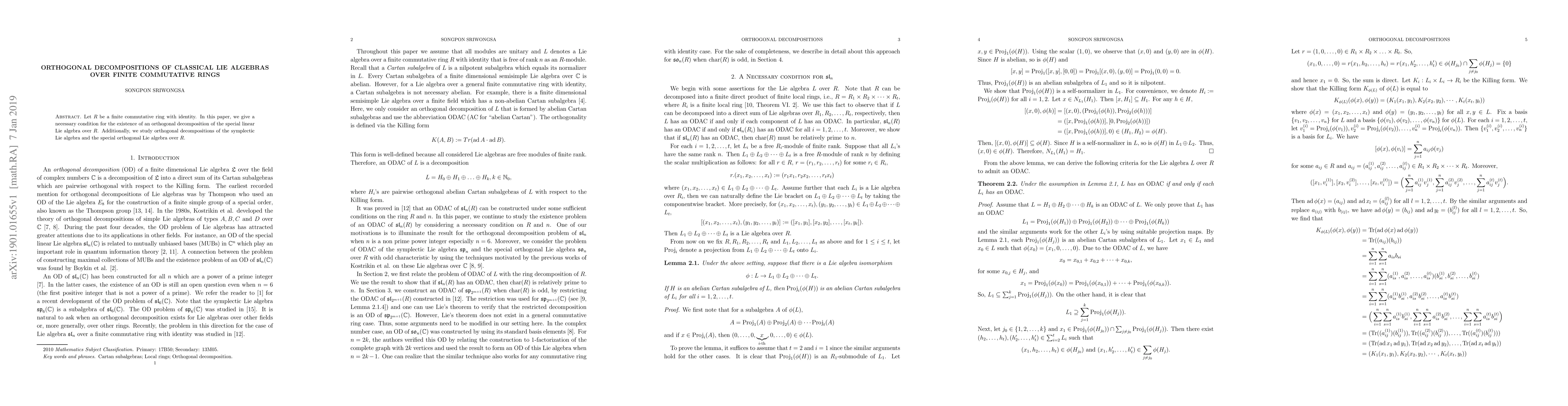 Let $R$ be a finite commutative ring with identity. In this paper, we give a necessary condition for the existence of an orthogonal decomposition of the special linear Lie algebra over $R$. Additionally, we study orthogonal decompositions of the symplectic Lie algebra and the special orthogonal Lie algebra over $R$.