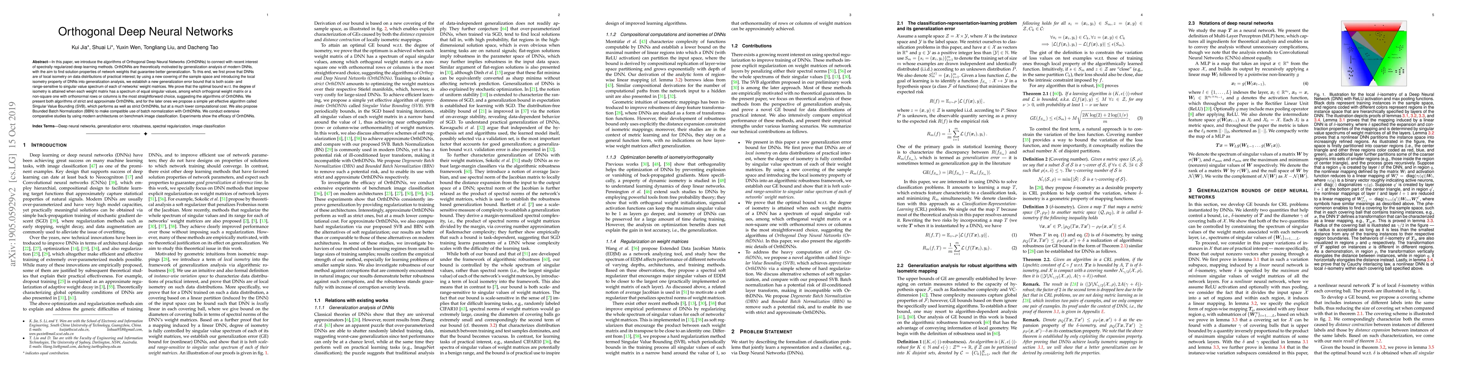 This paper introduces Orthogonal Deep Neural Networks (OrthDNNs), which aim to improve generalization of deep learning models through spectrally regularized training, achieving comparable performance at lower computational cost.