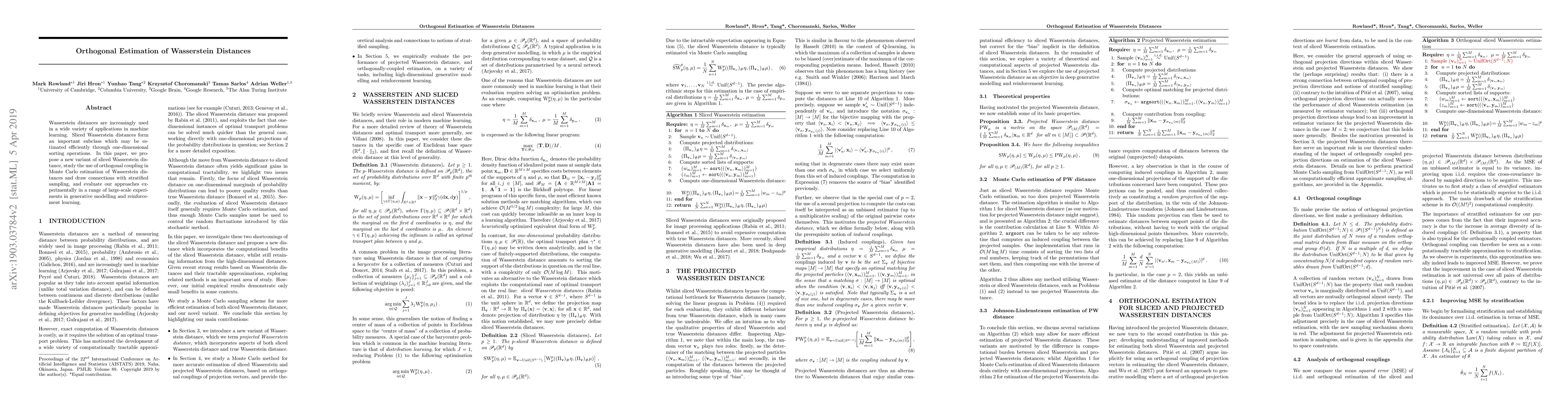 This paper proposes an orthogonal variant of sliced Wasserstein distances, leveraging Monte Carlo estimation and orthogonal coupling for efficient computation. Experimental evaluations across generative modelling and reinforcement learning demonstrate the effectiveness of the new approach.
