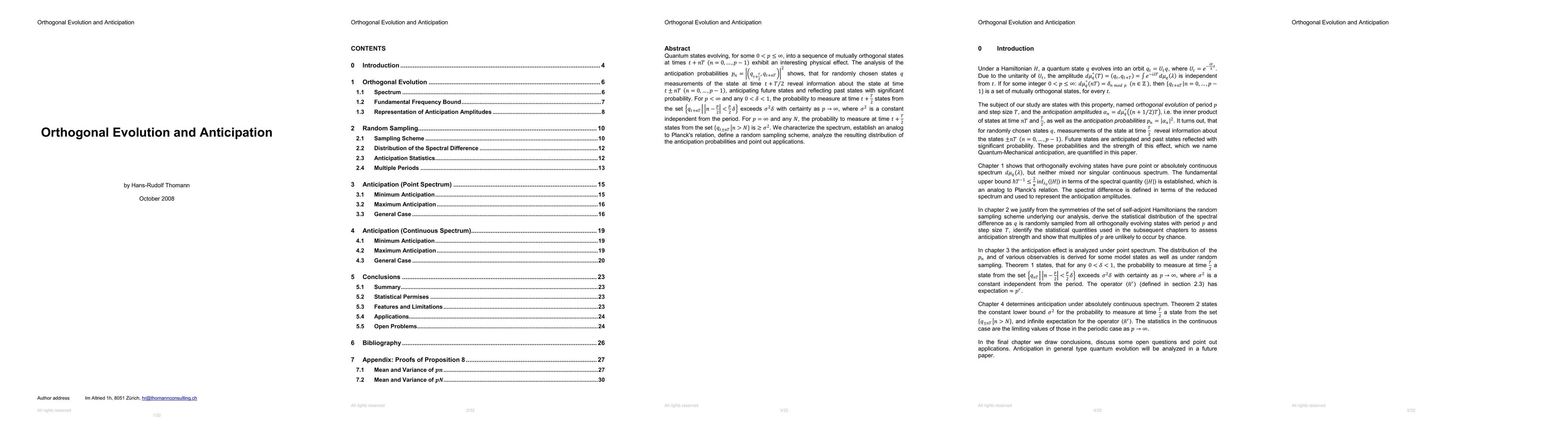Quantum states evolving at equidistant steps into a set of mutually orthogonal states of finite or infinite cardinality p exhibit an interesting physical effect. The analysis of the amplitudes of the state at half the step time with the elements of this set (the anticipation amplitudes) shows, that for randomly chosen states measurements of the state at half-step time reveal information about the states at full step time, anticipating future states and reflecting past states with significant probability. For fixed N and p to infinity, the probability to measure a state which is N steps apart in future or past exceeds a constant lower bound. We characterize the spectrum, establish an analog to Plack's relation, define a random sampling scheme, analyze the resulting distribution of the anticipation probabilities and point out applications.