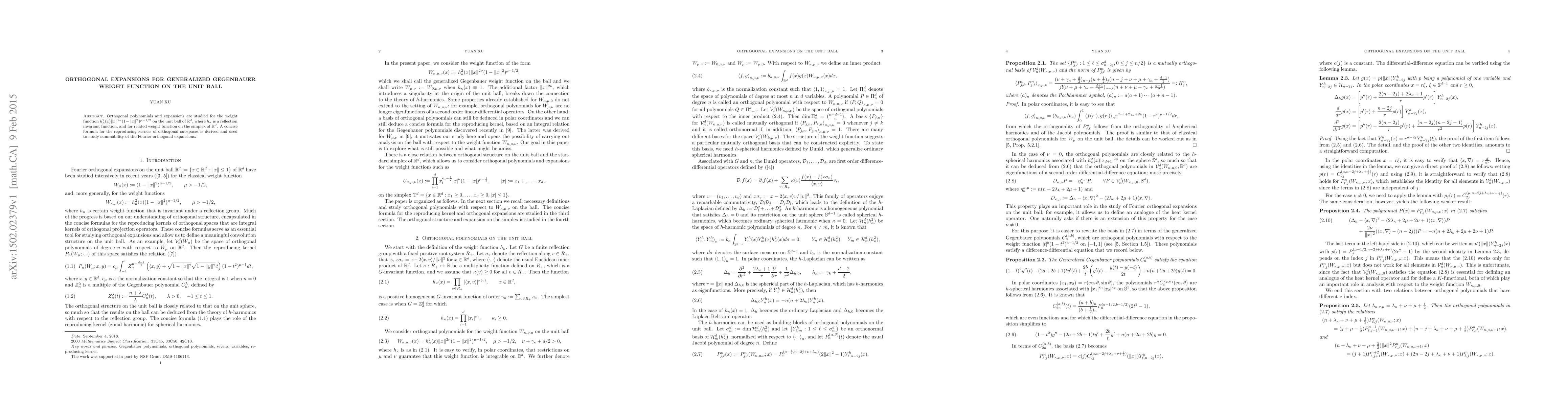 Orthogonal polynomials and expansions are studied for the weight function $h_\kappa^2(x) \|x\|^{2\nu} (1-\|x\|^2)^{\mu-1/2}$ on the unit ball of $\mathbb{R}^d$, where $h_\kappa$ is a reflection invariant function, and for related weight function on the simplex of $\mathbb{R}^d$. A concise formula for the reproducing kernels of orthogonal subspaces is derived and used to study summability of the Fourier orthogonal expansions.