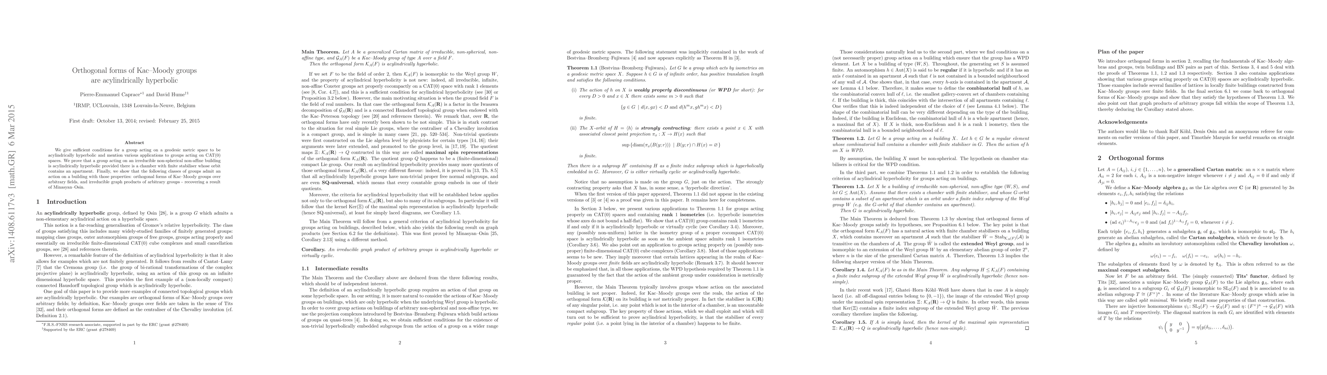 Summary: This paper establishes sufficient conditions for a group acting on a geodesic metric space to be acylindrically hyperbolic and applies these conditions to orthogonal forms of Kac-Moody groups. It demonstrates that such groups acting on irreducible non-spherical non-affine buildings exhibit acylindrical hyperbolicity.