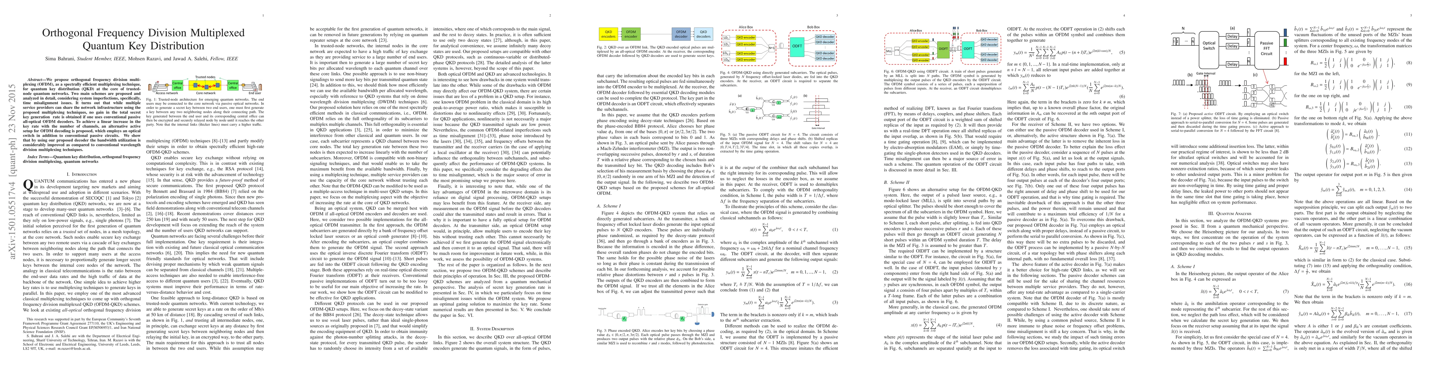 This paper proposes using orthogonal frequency division multiplexing (OFDM) for quantum key distribution (QKD) to enhance spectral efficiency in quantum networks. While passive OFDM decoders do not improve key generation rates, an active setup with an optical switch achieves a linear increase in key rate, significantly improving bandwidth utilization compared to wavelength division multiplexing.