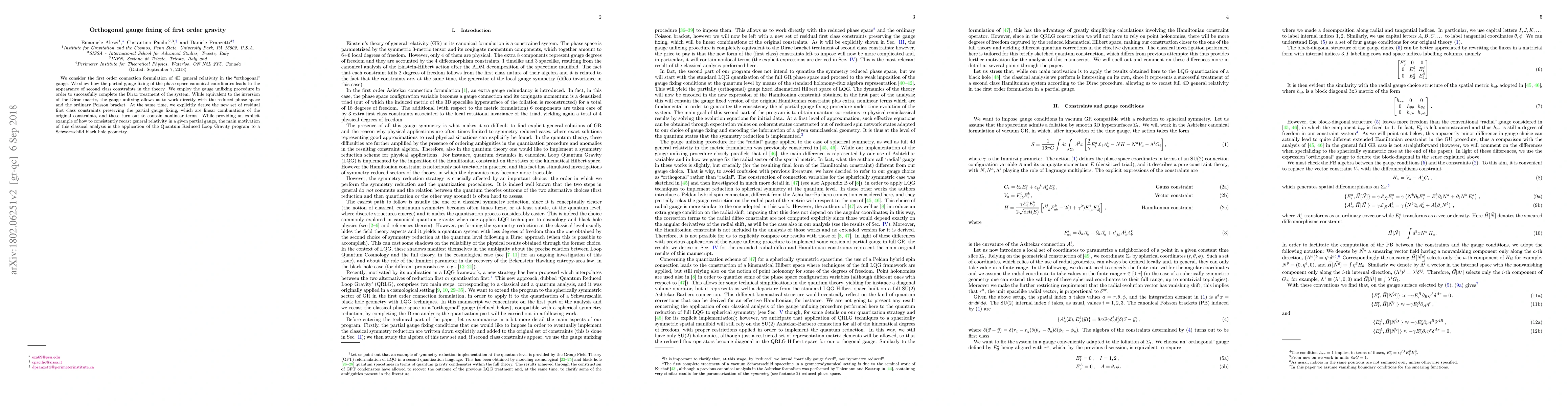 This paper explores the first-order connection formulation of 4D general relativity in the orthogonal gauge, revealing second class constraints from partial gauge fixing. The authors employ gauge unfixing to complete the Dirac analysis, deriving new residual first class constraints that include nonlinear terms, paving the way for the Quantum Reduced Loop Gravity program application to Schwarzschild black hole geometry.