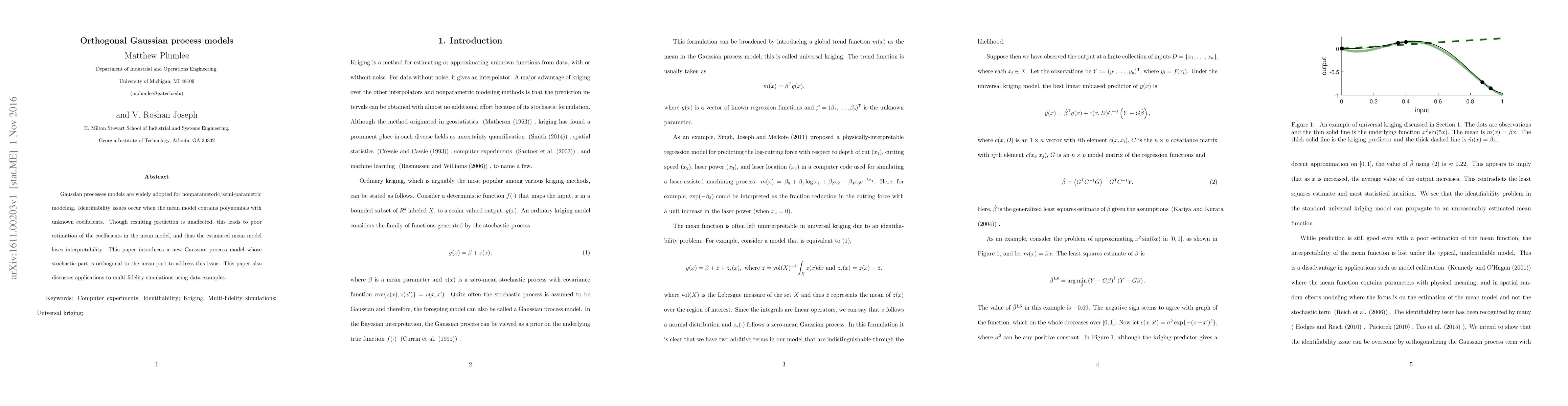 This research introduces a new Gaussian process model where the stochastic part is orthogonal to the mean part, addressing identifiability issues in coefficient estimation in polynomial mean models.