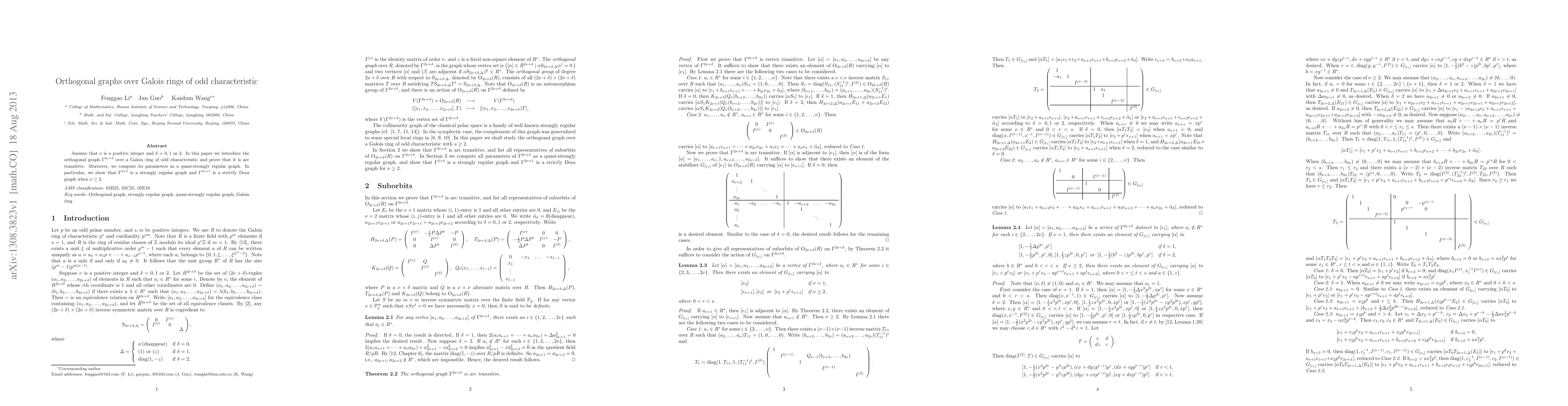 Assume that $\nu$ is a positive integer and $\delta=0, 1$ or $2$. In this paper we introduce the orthogonal graph $\Gamma^{2\nu+\delta}$ over a Galois ring of odd characteristic and prove that it is arc transitive. Moreover, we compute its parameters as a quasi-strongly regular graph. In particular, we show that $\Gamma^{2+\delta}$ is a strongly regular graph and $\Gamma^{2\nu+1}$ is a strictly Deza graph when $\nu\geq 2$.