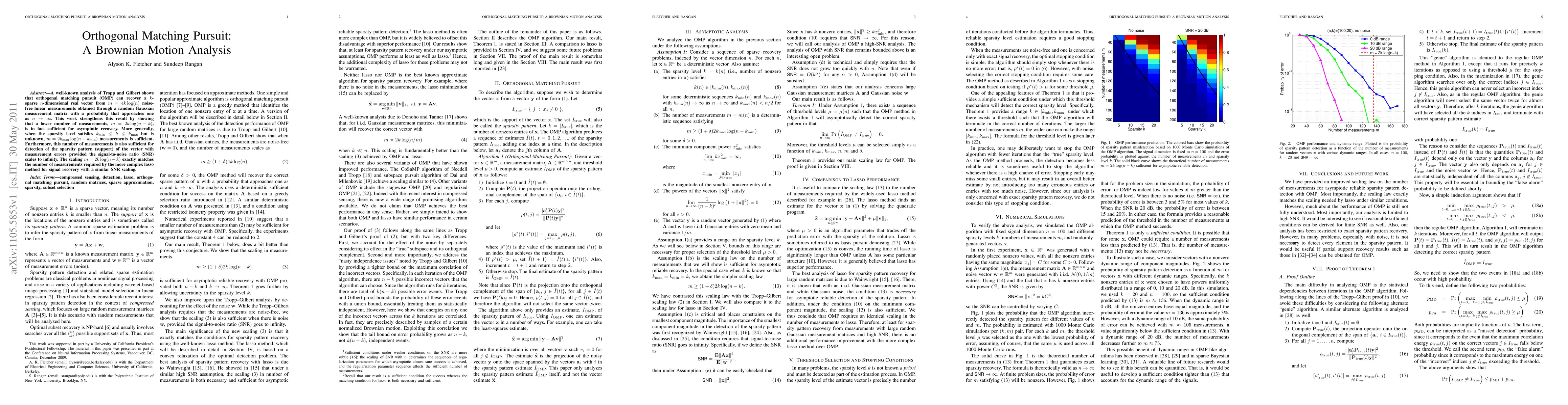 A well-known analysis of Tropp and Gilbert shows that orthogonal matching pursuit (OMP) can recover a k-sparse n-dimensional real vector from 4 k log(n) noise-free linear measurements obtained through a random Gaussian measurement matrix with a probability that approaches one as n approaches infinity. This work strengthens this result by showing that a lower number of measurements, 2 k log(n - k), is in fact sufficient for asymptotic recovery. More generally, when the sparsity level satisfies kmin <= k <= kmax but is unknown, 2 kmax log(n - kmin) measurements is sufficient. Furthermore, this number of measurements is also sufficient for detection of the sparsity pattern (support) of the vector with measurement errors provided the signal-to-noise ratio (SNR) scales to infinity. The scaling 2 k log(n - k) exactly matches the number of measurements required by the more complex lasso method for signal recovery with a similar SNR scaling.