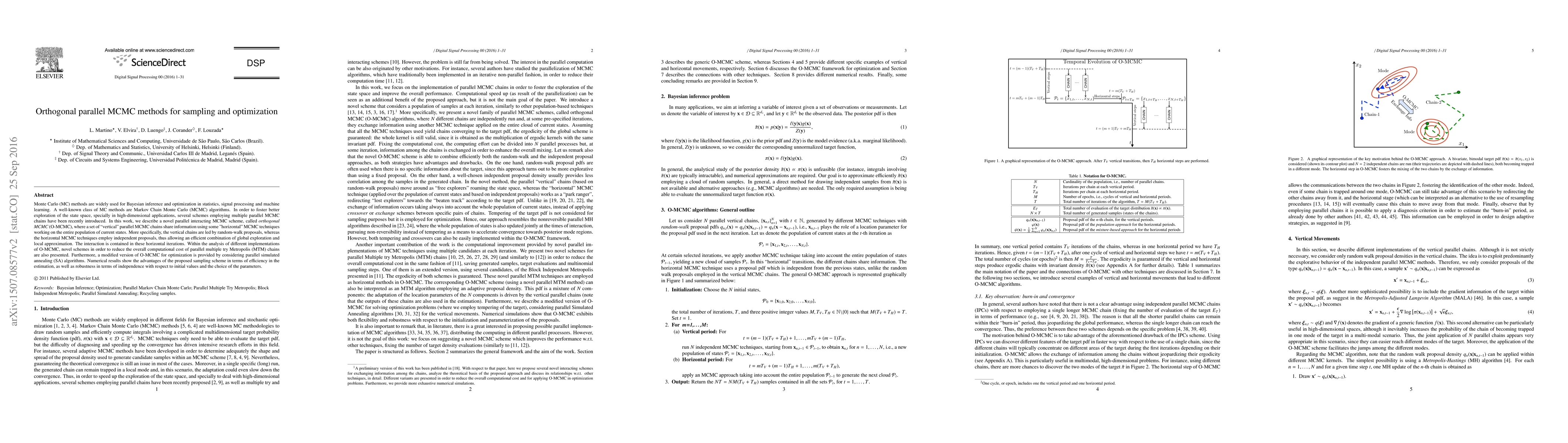 This paper introduces a novel orthogonal parallel MCMC method (O-MCMC) that combines vertical parallel MCMC chains with horizontal techniques for global exploration and local approximation. The proposed scheme demonstrates improved efficiency and robustness in high-dimensional sampling and optimization tasks.