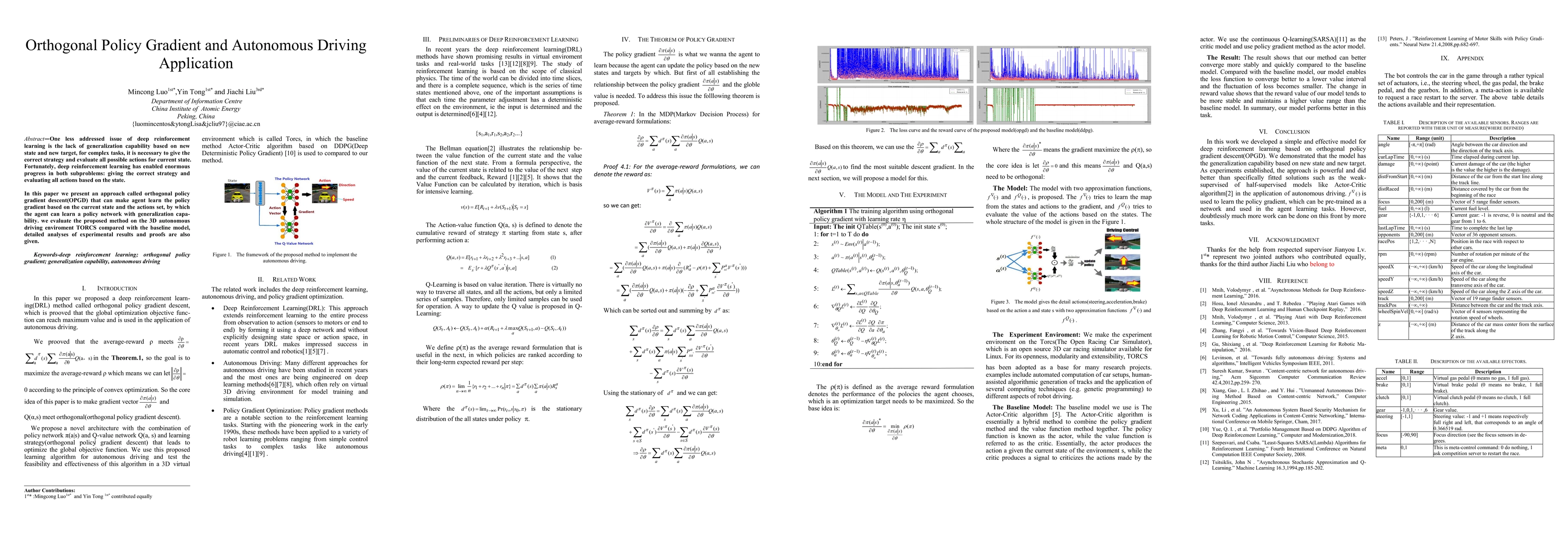 One less addressed issue of deep reinforcement learning is the lack of generalization capability based on new state and new target, for complex tasks, it is necessary to give the correct strategy and evaluate all possible actions for current state. Fortunately, deep reinforcement learning has enabled enormous progress in both subproblems: giving the correct strategy and evaluating all actions based on the state. In this paper we present an approach called orthogonal policy gradient descent(OPGD) that can make agent learn the policy gradient based on the current state and the actions set, by which the agent can learn a policy network with generalization capability. we evaluate the proposed method on the 3D autonomous driving enviroment TORCS compared with the baseline model, detailed analyses of experimental results and proofs are also given.