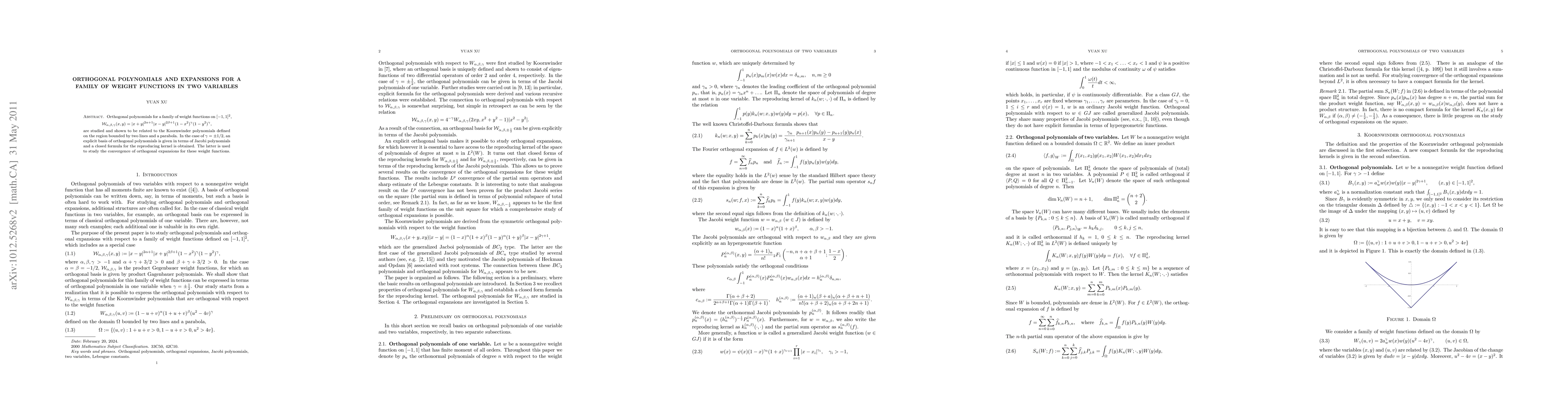 This paper investigates orthogonal polynomials for a specific family of weight functions in two variables, demonstrating their connection to Koornwinder polynomials. It provides an explicit basis for $\g = \pm 1/2$ in terms of Jacobi polynomials and derives a closed formula for the reproducing kernel to analyze the convergence of orthogonal expansions.