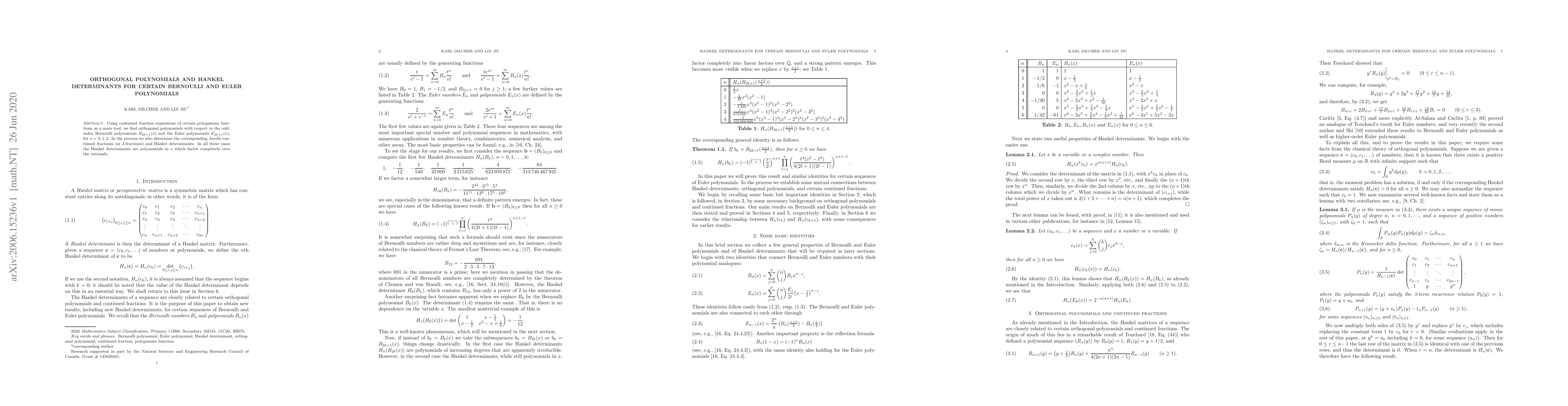 Summary: This paper finds orthogonal polynomials for odd-index Bernoulli and Euler polynomials using continued fraction expansions. It also determines corresponding Jacobi continued fractions and Hankel determinants, which are fully factorizable polynomials in $x$.