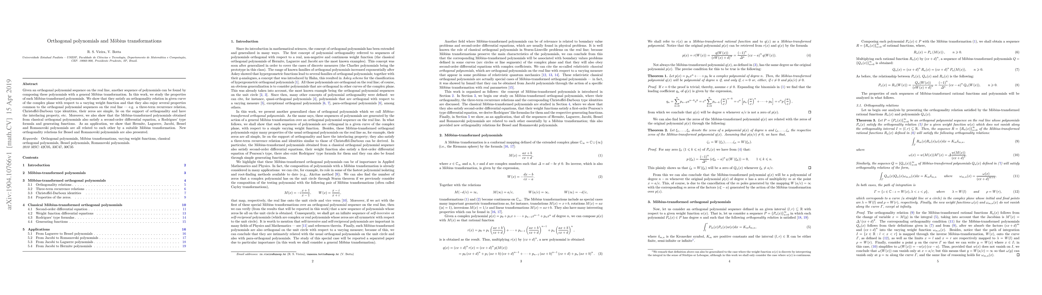 Given an orthogonal polynomial sequence on the real line, another sequence of polynomials can be found by composing these polynomials with a general M\"obius transformation. In this work, we study the properties of such M\"obius-transformed polynomials. We show that they satisfy an orthogonality relation in given curve of the complex plane with respect to a varying weight function and that they also enjoy several properties common to the orthogonal polynomial sequences on the real line --- e.g. a three-term recurrence relation, Christoffel-Darboux type identities, their zeros are simple, lie on the support of orthogonality and have the interlacing property, etc. Moreover, we also show that the M\"obius-transformed polynomials obtained from classical orthogonal polynomials also satisfy a second-order differential equation, a Rodrigues' type formula and generating functions. As an application, we show that Hermite, Laguerre, Jacobi, Bessel and Romanovski polynomials are all related to each other by a suitable M\"obius transformation. New orthogonality relations for Bessel and Romanovski polynomials are also presented.