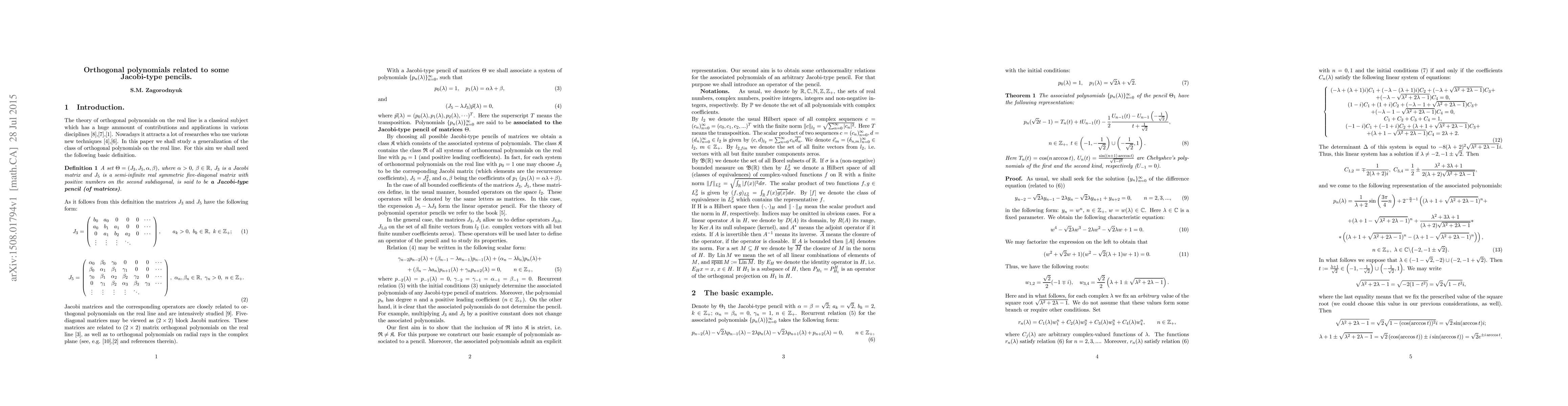 The research employed a combination of mathematical analysis and computational methods to study orthogonal polynomials related to Jacobi-type pencils.