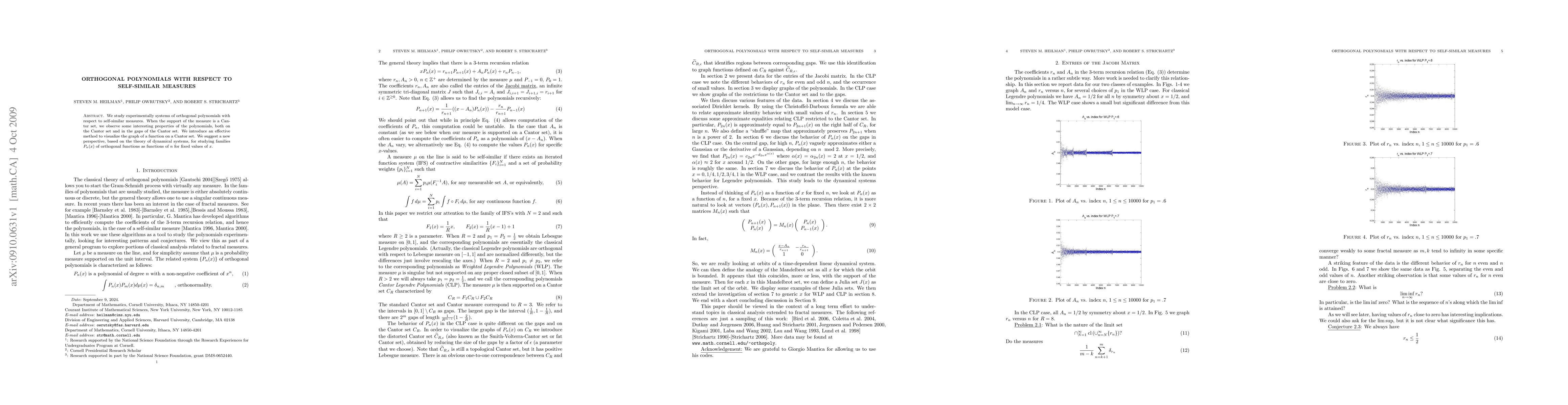 We study experimentally systems of orthogonal polynomials with respect to self-similar measures. When the support of the measure is a Cantor set, we observe some interesting properties of the polynomials, both on the Cantor set and in the gaps of the Cantor set. We introduce an effective method to visualize the graph of a function on a Cantor set. We suggest a new perspective, based on the theory of dynamical systems, for studying families $P_{n}(x)$ of orthogonal functions as functions of $n$ for fixed values of $x$.
