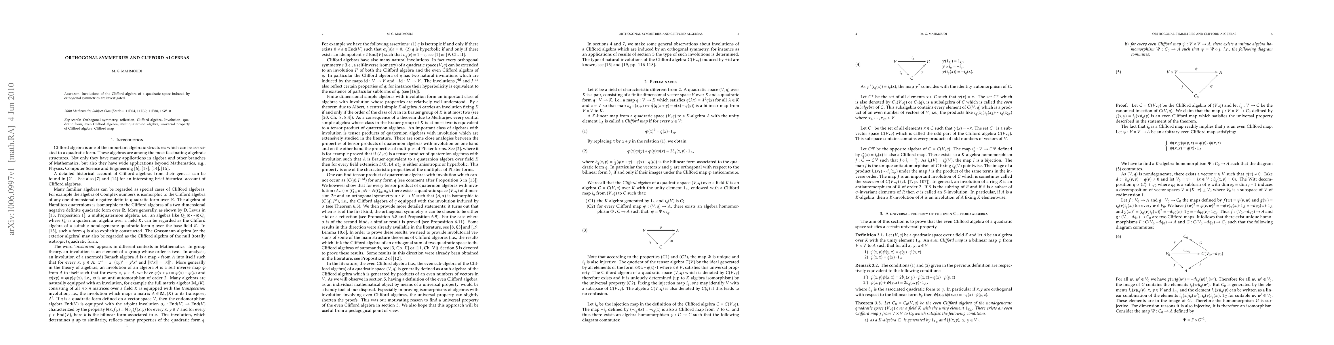 This paper explores how orthogonal symmetries affect the structure of Clifford algebras through involutions, shedding light on the interplay between geometric transformations and algebraic properties.