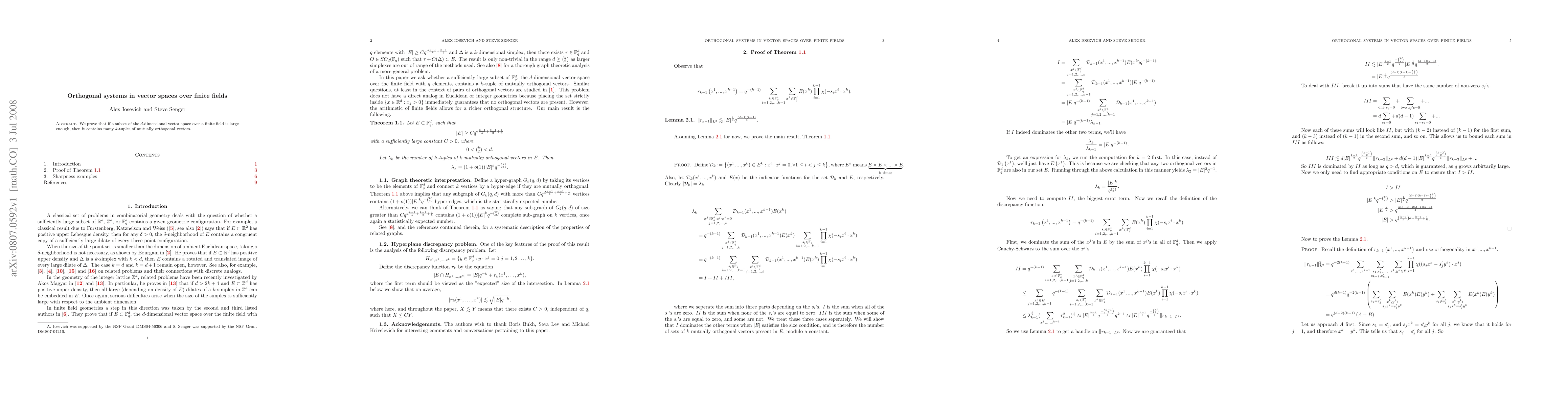 Summary: This paper demonstrates that sufficiently large subsets in d-dimensional vector spaces over finite fields contain numerous k-tuples of mutually orthogonal vectors, establishing the existence of orthogonal systems within these vector spaces.