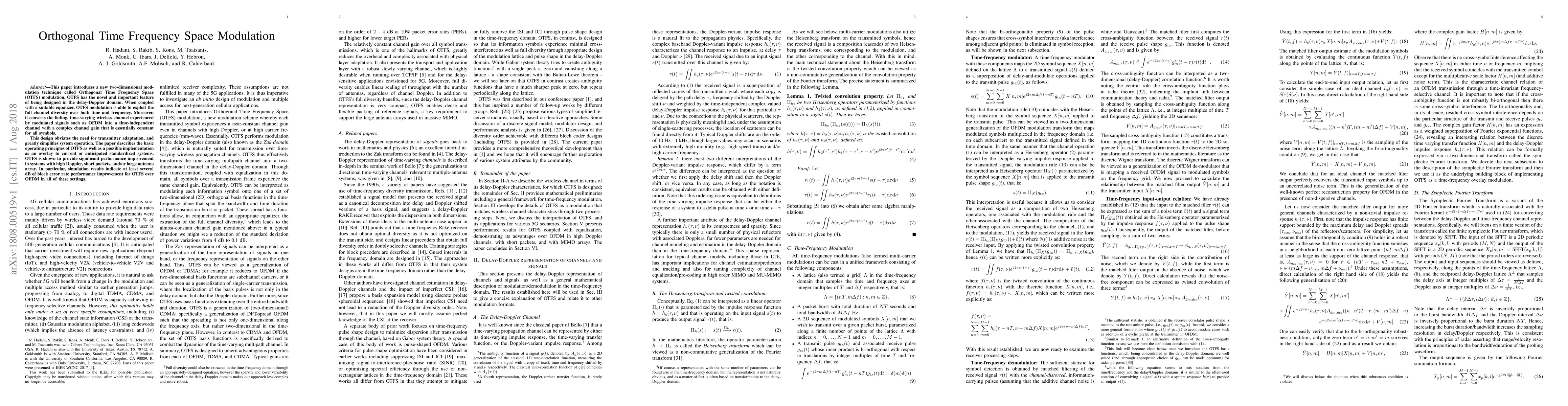 This paper introduces Orthogonal Time Frequency Space (OTFS) modulation, a novel two-dimensional technique designed in the delay-Doppler domain that simplifies system operation and enhances channel diversity. OTFS provides significant performance improvements over OFDM, especially in high Doppler, short packet, and large antenna array scenarios.