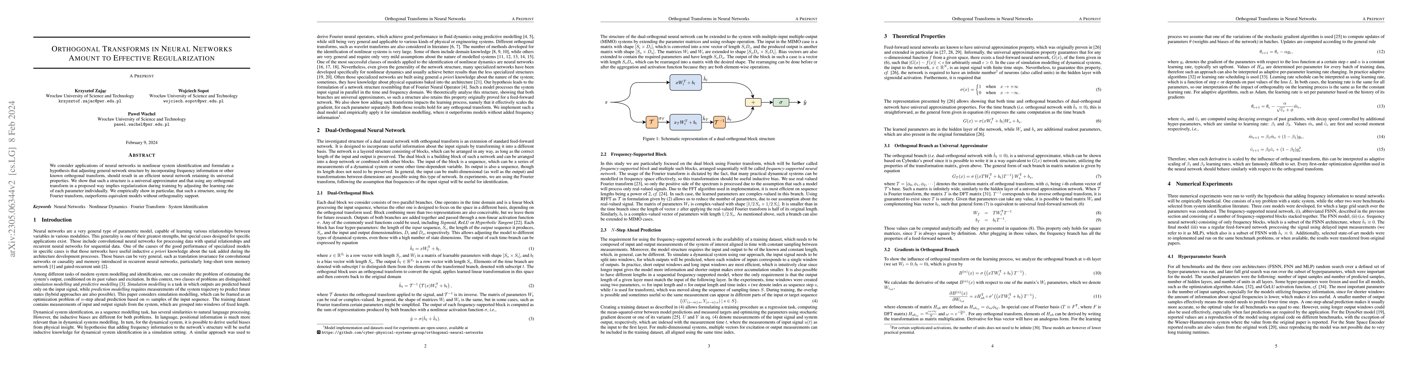 We consider applications of neural networks in nonlinear system identification and formulate a hypothesis that adjusting general network structure by incorporating frequency information or other known orthogonal transform, should result in an efficient neural network retaining its universal properties. We show that such a structure is a universal approximator and that using any orthogonal transform in a proposed way implies regularization during training by adjusting the learning rate of each parameter individually. We empirically show in particular, that such a structure, using the Fourier transform, outperforms equivalent models without orthogonality support.